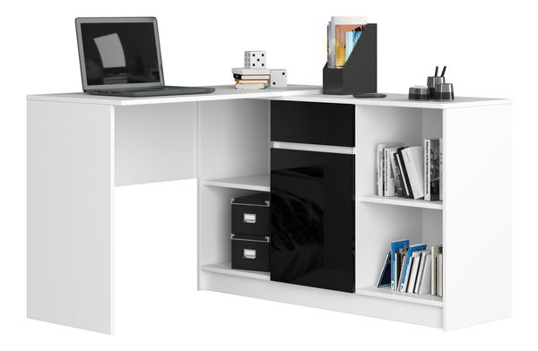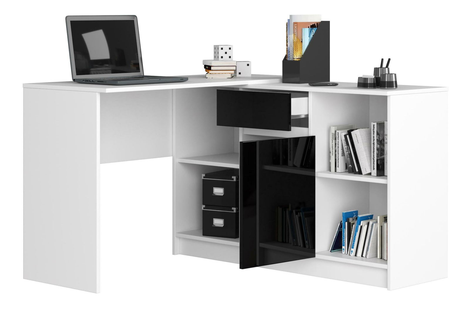 Rohový PC stolek Bahar (bílá + lesk černý)
