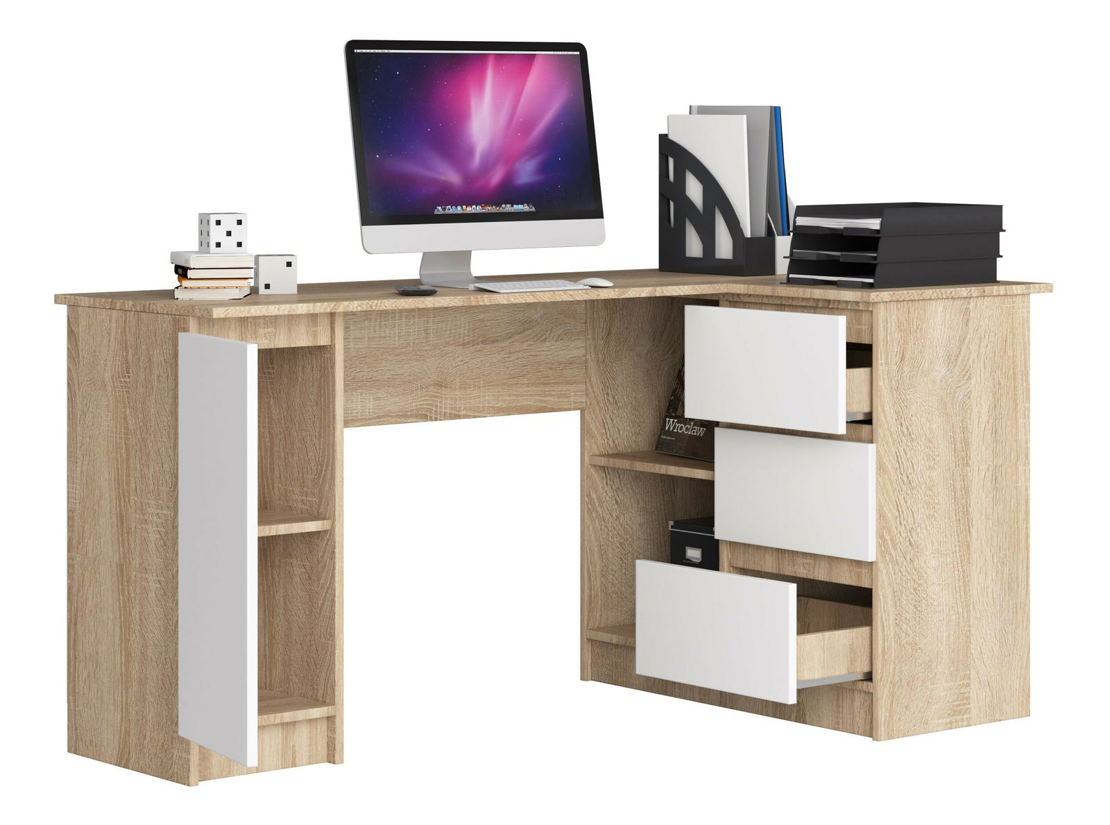 Rohový PC stolek Bevin (dub sonoma + bílá) (P)