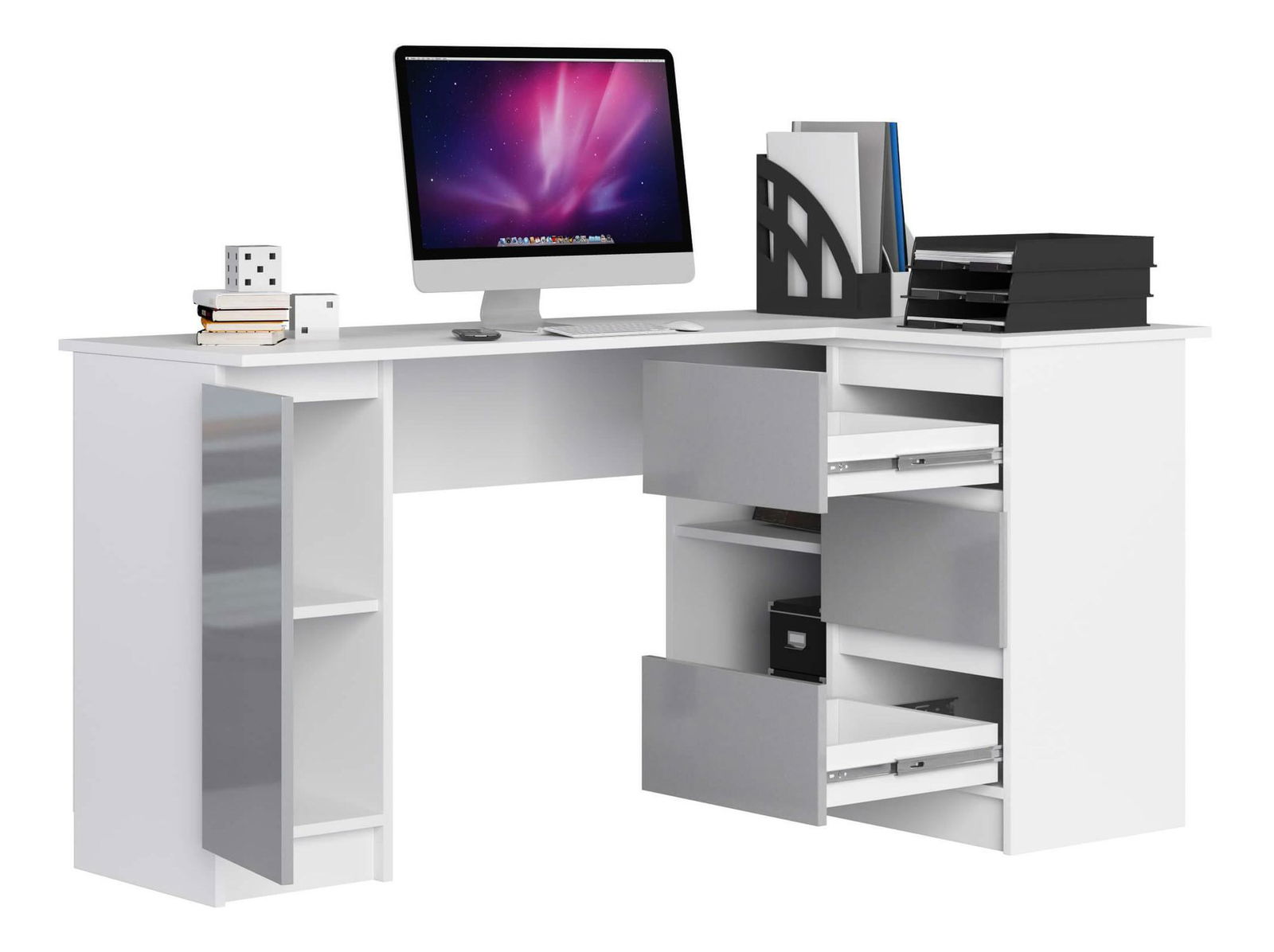 Rohový PC stolek Bevin (metalický lesk) (P)