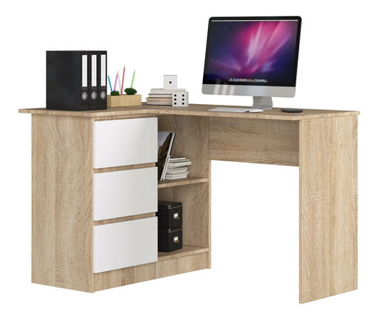 Rohový PC stolek Bodhi (dub sonoma + bílá) (L)