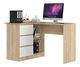 Rohový PC stolek Bodhi (dub sonoma + bílý lesk) (L)