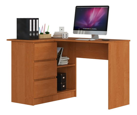 Hledáte jedinečný psací stůl, který se hodí do jakéhokoli prostoru? Jste na správném místě, protože vám nabízíme rohový psací stůl Bodhi. Hodí se do každého interiéru a postará se tak o vytvoření jedinečné atmosféry potřebné pro práci či studium. Psací stůl Bodhi disponuje 3 prostornými zásuvkami, které se pohybují na kovových válečkových vodítkách. Produkt má spoustu prostoru pro jakékoli uspořádání a do polic se snadno vejdou pořadače, knihy a dokumenty. Velkou výhodou je, že psací stůl je vyroben ze 16 mm oděruvzdorné laminované desky a hrany jsou kryty ABS páskou, která zaručuje vyšší odolnost proti poškození. Jednoduchý a zároveň atraktivní design nábytku je zárukou spokojenosti i toho nejnáročnějšího vkusu. Dostupný ve více barevných provedeních.