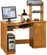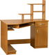 Rohový PC stůl, který se skládá z pracovní desky, pod kterou se nachází výsuvná deska na klávesnici a jedna polička. Pod nimi je na levé straně dlouhá police na klasickou PC skříň. Na pravé straně stolku v dolní části je umístěna skříňka, nad ní zásuvka. Na horní pracovní desku je upevněna sestava polic nebo malý regál.