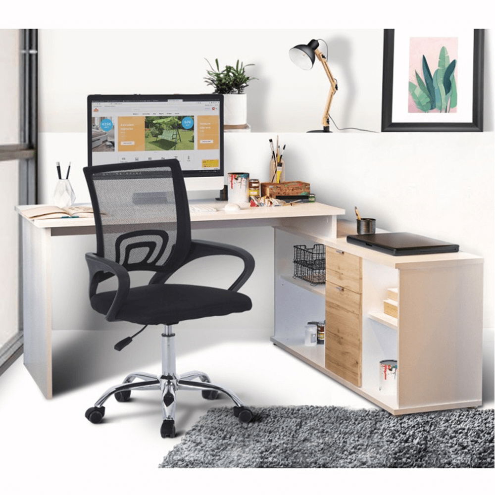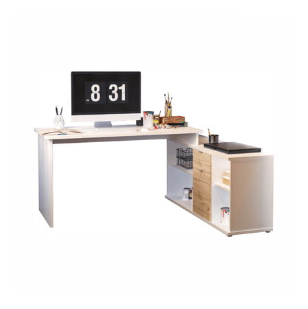 Rohový PC stolek Dalton vám poskytne množství úložného prostoru. PC stolek je univezálni. V pravé části PC stolku se nacházejí otevřené poličky a skříňka se zásuvkou uprostřed. Stolek s moderním designem.