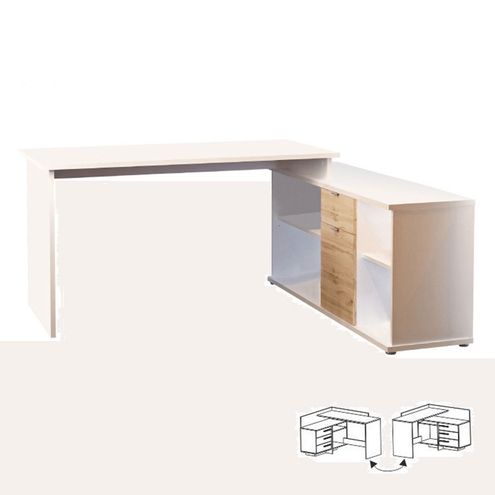 Rohový PC stolek Dasys VE 02 (dub wotan + bílá)