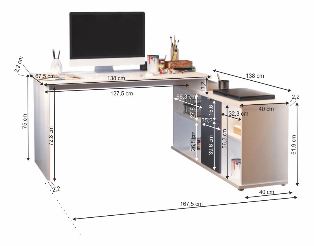 Rohový univerzální PC stolek Dalton vám poskytne množství úložného prostoru. V pravé části PC stolku se nacházejí otevřené poličky a skříňka se zásuvkou uprostřed. Stolek s moderním designem je dodáván v pěkné barevné kombinaci dub sonoma světlý a bílá.