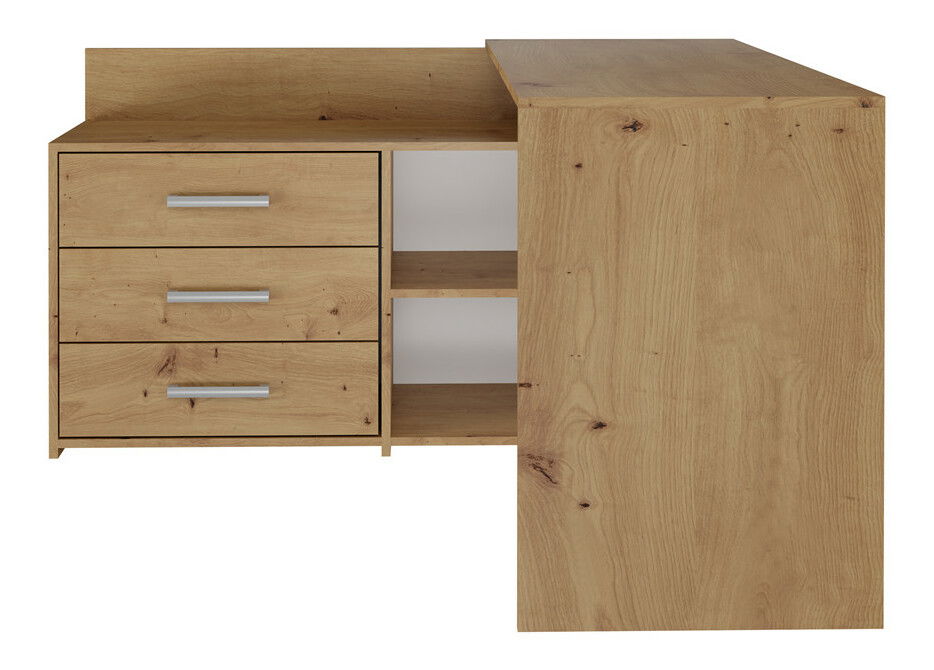 ZobrazitRohový pc stolek Debio 1 v elegantní barvě dub artisan je ideálním řešením pro každou pracovnu nebo studentský koutek. Jeho praktický tvar ve tvaru L efektivně využívá prostor a poskytuje dostatek místa pro práci či studium. Se třemi prostornými zásuvkami, které jsou umístěny na kvalitních válečkových vodítkách, nabízí pohodlné a bezpečné uskladnění dokumentů a kancelářských potřeb. Tento moderní a funkční nábytek je navržen tak, aby vytvářel komfortní pracovní atmosféru a jeho jednoduché linie se hodí do každého interiéru.