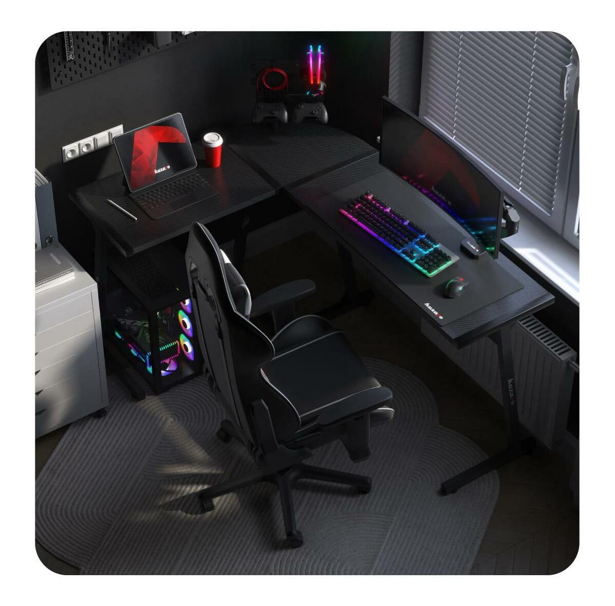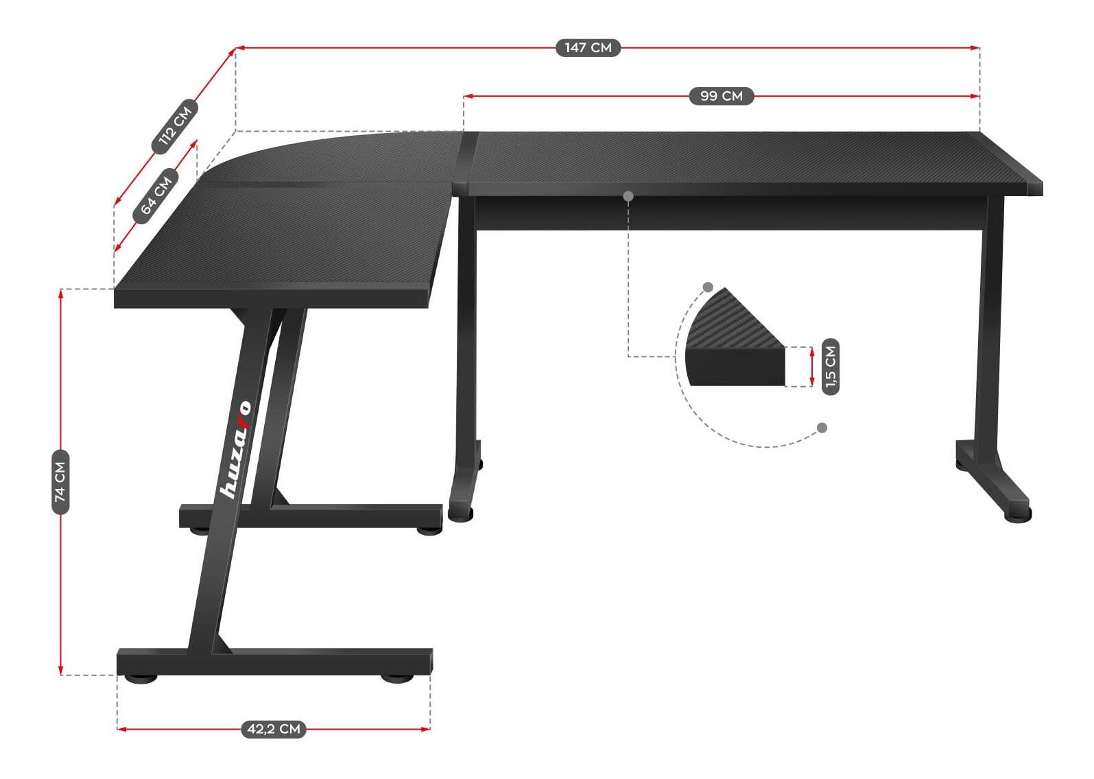 Rozumné využití prostoru je klíčové při zařizování každého interiéru. Nábytek je však málokdy navržen tak, aby využil prostor k maximu. Díky vrchní části ve tvaru L je tento stůl nejen praktický, ale především nastavitelný. V závislosti na vašich preferencích lze psací stůl sestavit dvěma způsoby: se širším nástavcem na levé nebo pravé straně. Celý proces je velmi jednoduchý a uživatelská příručka vás provede bez ohledu na preferovanou stránku. Deska stolu je pokryta speciálním povlakem podobným uhlíku. Jedná se o mimořádně praktické řešení, stolová deska je odolná, odolná vůči poškrábání a nečistotám a zároveň skvěle vypadá. Stolová deska o tloušťce 15 mm, vyrobená z odolné desky, zaručuje stabilitu i při velmi vysokém tlaku.