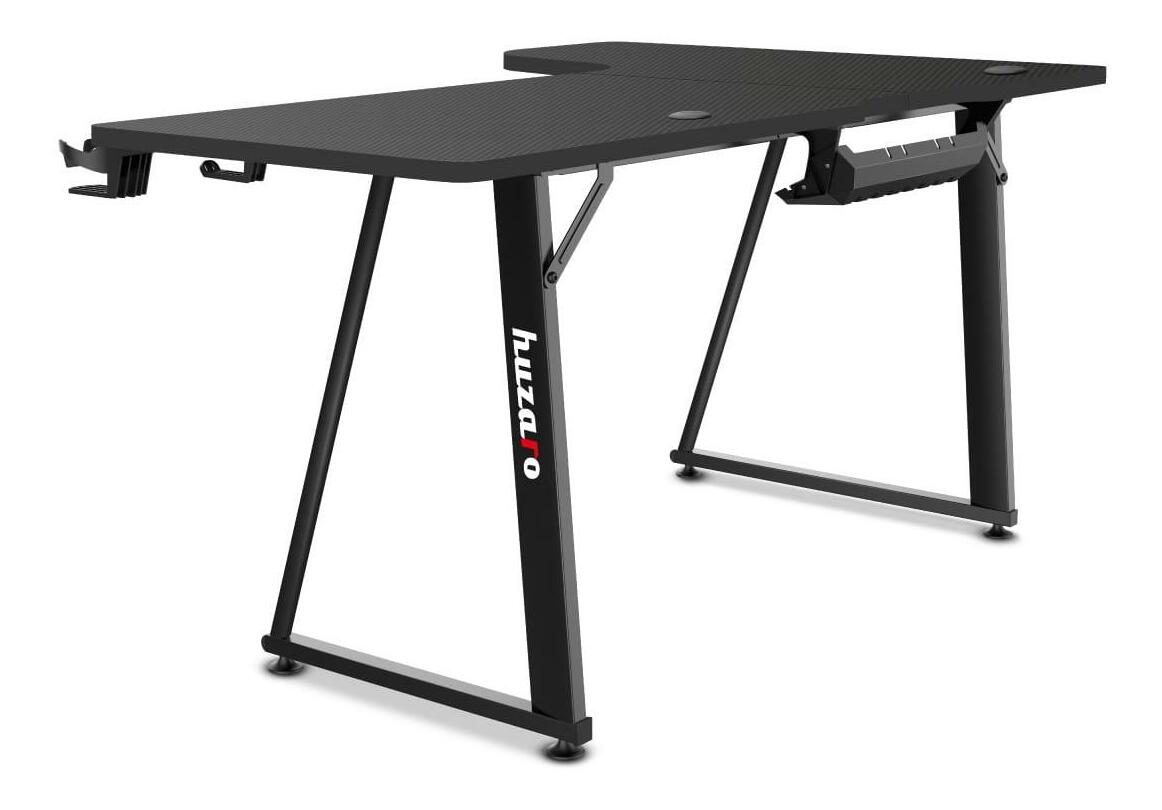 Díky speciálnímu svršku ve tvaru L je stůl nejen praktický, ale především nastavitelný. Nábytek byl pečlivě promyšlen, aby se přizpůsobil vašemu interiéru. V závislosti na vašich preferencích lze psací stůl sestavit dvěma způsoby: se širším nástavcem na levé nebo pravé straně. Celý proces je velmi jednoduchý a návod k použití vás provede. Ne náhodou má pracovní deska charakteristický tvar „L“. Promyšlený design zvyšuje množství prostoru, kterého můžeme využít při práci nebo studiu. Díky tomu je vše vždy po ruce. Deska stolu je pokryta speciálním povlakem podobným uhlíku. Jedná se o mimořádně praktické řešení, stolová deska je odolná, odolná vůči poškrábání a nečistotám a zároveň skvěle vypadá. Stolová deska o tloušťce 15 mm vyrobená z odolné desky zajišťuje odolnost a stabilitu i při velmi vysokém tlaku. Stůl má dva strategicky umístěné kabelové vstupy. To vám dává svobodu výběru při zařizování vaší pracovní stanice a pohodlí a pořádek při práci a hraní za stolem. Organizér umístěný v zadní části stolu pomáhá udržovat pořádek na stole a usnadňuje vedení a připojení kabelů. Pohodlný, praktický držák na sluchátka. Když sluchátka nepoužíváte, visí bezpečně, aniž by zabírala místo na vašem stole. Speciální, pohodlný držák na nápoje. Snadno a bezpečně do ní uložíte plechovky, láhve a sklenice. Držák sklenice snižuje riziko náhodného zaplavení cenného vybavení.
