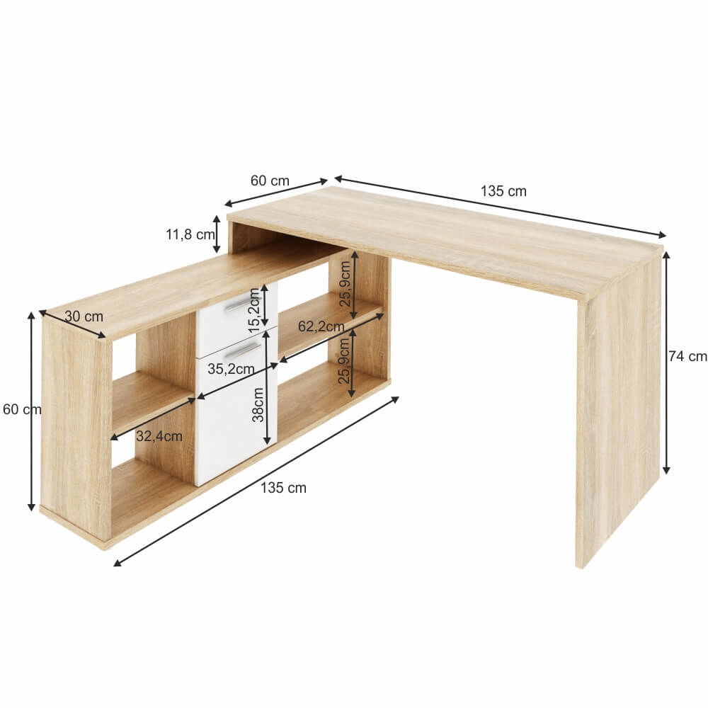 Rohový PC stolek Norrix MT959 (dub sonoma + bílá)