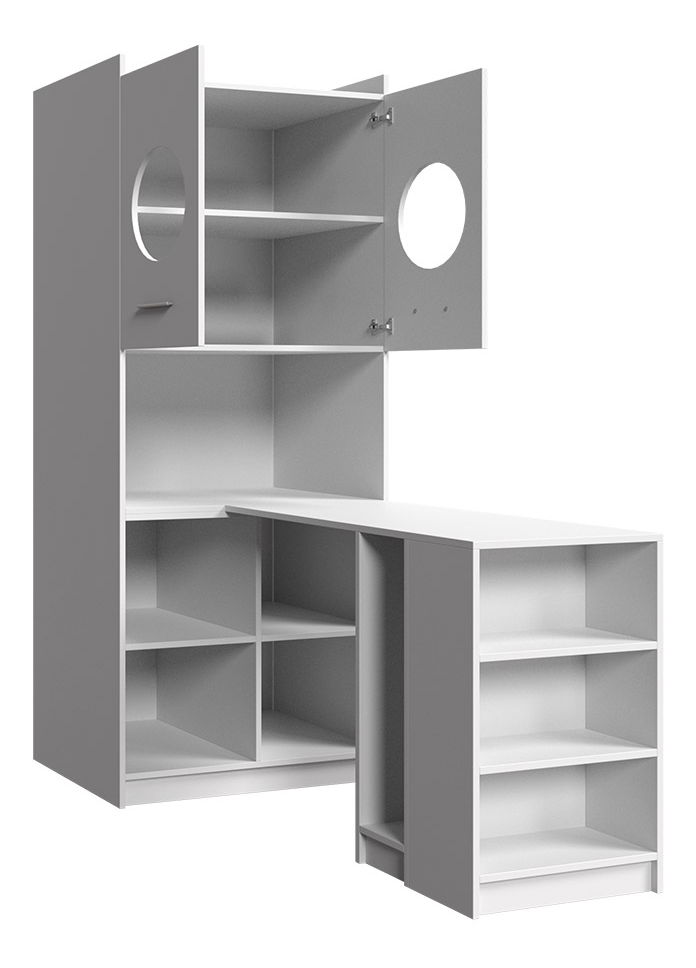 ZobrazitFunkční domácí kancelář nebo praktický stůl pro teenagera? Ať už je váš účel jakýkoli, rohový stůl s policem Paralia jistě splní všechna vaše očekávání. Rohové rozložení stolu příznivě zvyšuje množství pracovního prostoru. Uzavřená police s otevřenou zónou nabízí mnoho přihrádek. Toto uspořádání znamená, že máte všechny potřebné věci na dosah ruky. Protože se hodí k maximálnímu funkčnímu nábytku, strana stolu je také vyplněna řadou prostorných polic.