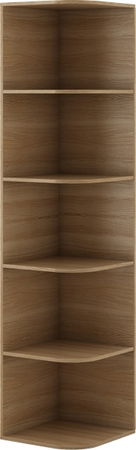 Skromný rohový regál, který bude dobrým doplňkem k odložení právě nepoužívaných věci a patří do pokoje v níž se "žije naplno".