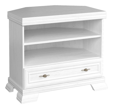 Praktický rohový TV stolek Kraz unikátního rustikálního vzhledu využijete v obývacích pokojích, ložnicích nebo pracovnách. V dolní části se nachází zásuvka. V horní části jsou poličky pro vaše AV zařízení. Má elegantní vyřezávané nohy a lišty. Zásuvka má kovové úchyty. Barevné provedení stolku je sosna andersen.