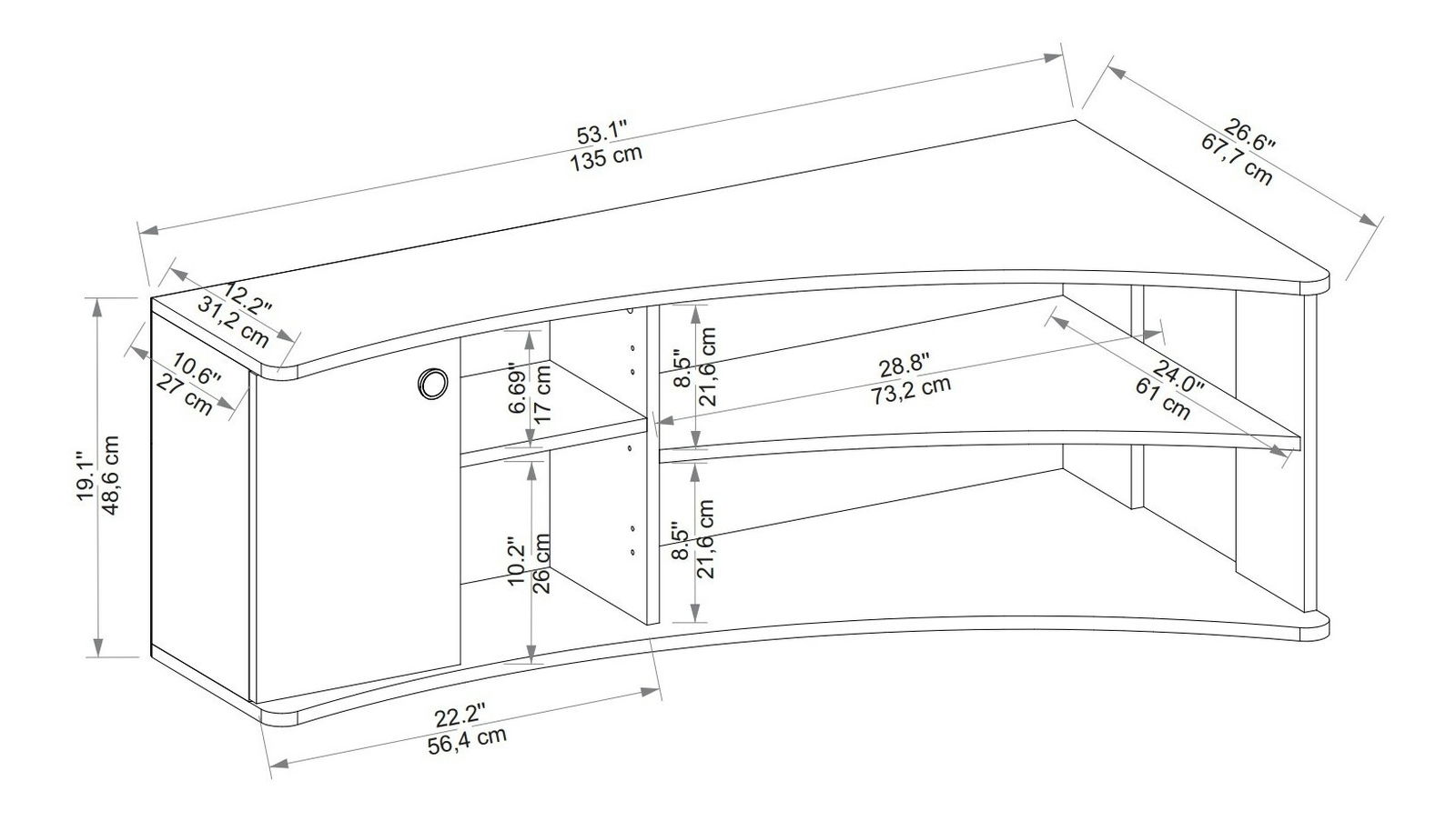 TV stolek/skříňka - Tiara je praktickým a elegantním řešením pro váš televizor. S výškou 48,6 cm a šířkou 135 cm poskytuje dostatek místa pro pohodlné umístění vaší oblíbené televizní jednotky. Jeho hluboká 67,7cm konstrukce z borovice antlantic a atracitu zajišťuje pevnost a dlouhou životnost. Svou moderní a stylovou estetikou Tiara přidává eleganci do vašeho obývacího prostoru. Kromě toho je tento TV stolek/skříňka vybaven praktickými úložnými prostory, které poskytují dostatek místa pro uložení různých mediálních zařízení a příslušenství. S Tiara TV stolkem/skříňkou si užijete nekonečné hodiny sledování televize v pohodlném a stylovém prostředí.