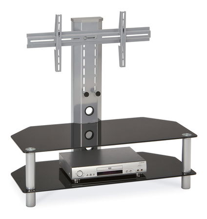 TV stolek TV-021 nabízí zajímavé řešení montáže televizoru přímo na konstrukci stolku. Stolek je v černěním barevném provedení ze skla.