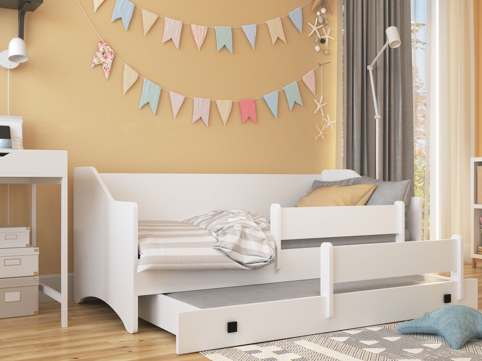 Představujeme vám postel NATY – místo snů a nekonečné pohody pro vaše malé poklady. Tato úžasná dětská postel je navržena s důrazem na bezpečnost, pohodlí a jedinečný design. Svým stylovým vzhledem a zaoblenými hranami působí postel NATY velmi jemně a příjemně. Je vyrobena z laminované desky s PVC okraji, což zajišťuje její odolnost a trvanlivost. NATY je vybavena roštem vyrobeným z pružných lamel v systému Flex. Tento rošt poskytuje optimální podporu a pohodlí pro vaše dítě během spánku. S nosností až 110 kg je postel NATY dostatečně pevná a odolná. S pěnovou matrací výšky 7 cm a odnímatelným povlakem na zip si vaše dítě užije pohodlný a zdravý spánek. Matrace je vyrobena z kvalitních materiálů a zajišťuje správné držení těla a podporu páteře. NATY nabízí také možnost vysouvání druhého lůžka. Toto výsuvné lůžko je ideální pro hosty nebo sourozence, kteří se rádi podělí o prostor se svým sourozencem. S plochou na spaní 160x80 cm má vaše dítě dostatek místa pro pohodlný a bezstarostný spánek. Postel NATY je také vybavena odnímatelnou a pohyblivou bariérou proti spadnutí, která zajišťuje bezpečnost a ochranu pro vaše dítě během spánku. Navíc dřevěné rukojeti ve tvaru čtverce přidávají posteli NATY speciální dotek elegance a jedinečnosti.