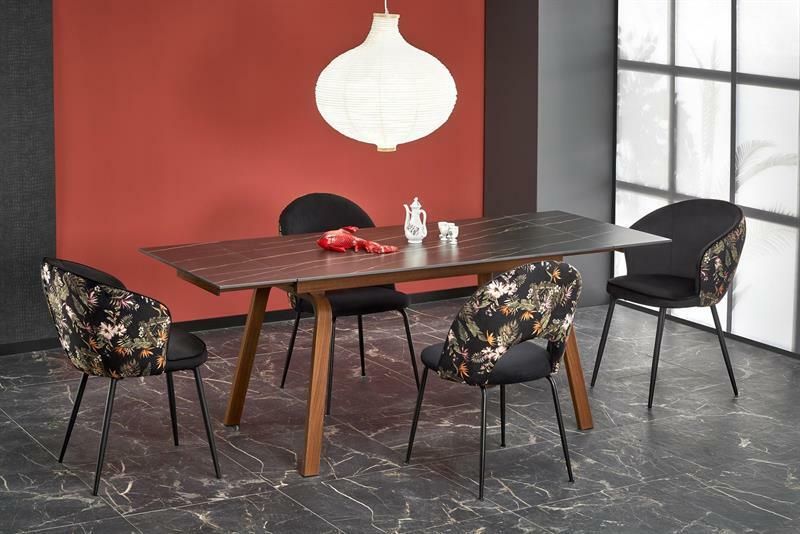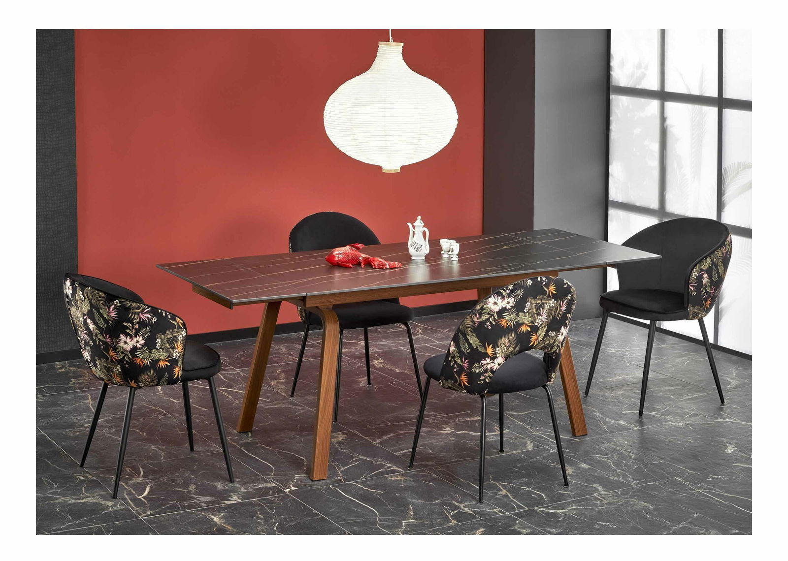 Rozkládací jídelní stůl 140-200 cm Léta (mramor černý + ořech) (pro 6 8 osob)
