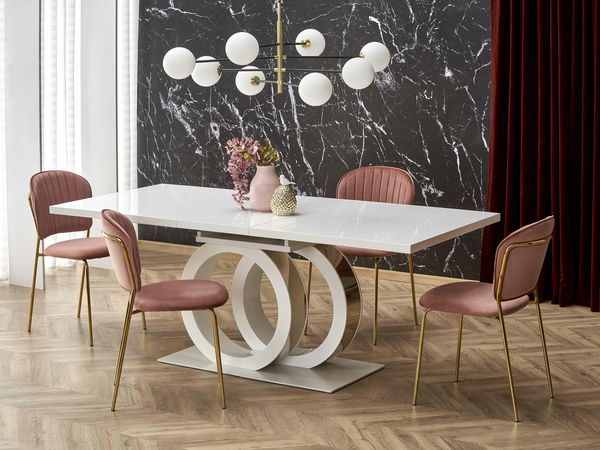 Rozkládací jídelní stůl 160-200 cm Gabriel (bílá + zlatá) (pro 6 8 osob)