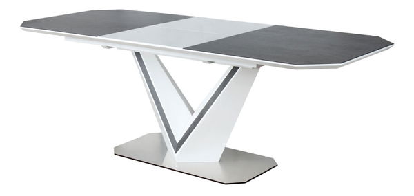 Rozkládací jídelní stůl Vergie je ideální volbou pro velké rodinné oslavy či pohoštění. Díky svému jednoduchému rozkládacímu mechanismu může stůl snadno změnit svoji velikost ze 160 cm na až 220 cm a poskytnout tak dostatek místa pro 8 a více hostů. Stůl je vyroben z kvalitního materiálu a má výšku 76 cm a hloubku 90 cm, což zaručuje pohodlné sezení a dostatek prostoru pro servírování jídel. Šedá a bílá barva stolu se hodí do každého interiéru a jeho jednoduchý, ale moderní design přidává každému prostoru eleganci. Rozkládací jídelní stůl Vergie je praktický a stylový nábytek, který se stane skvělým doplňkem do vaší domácnosti.
