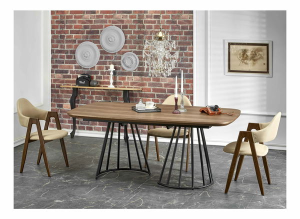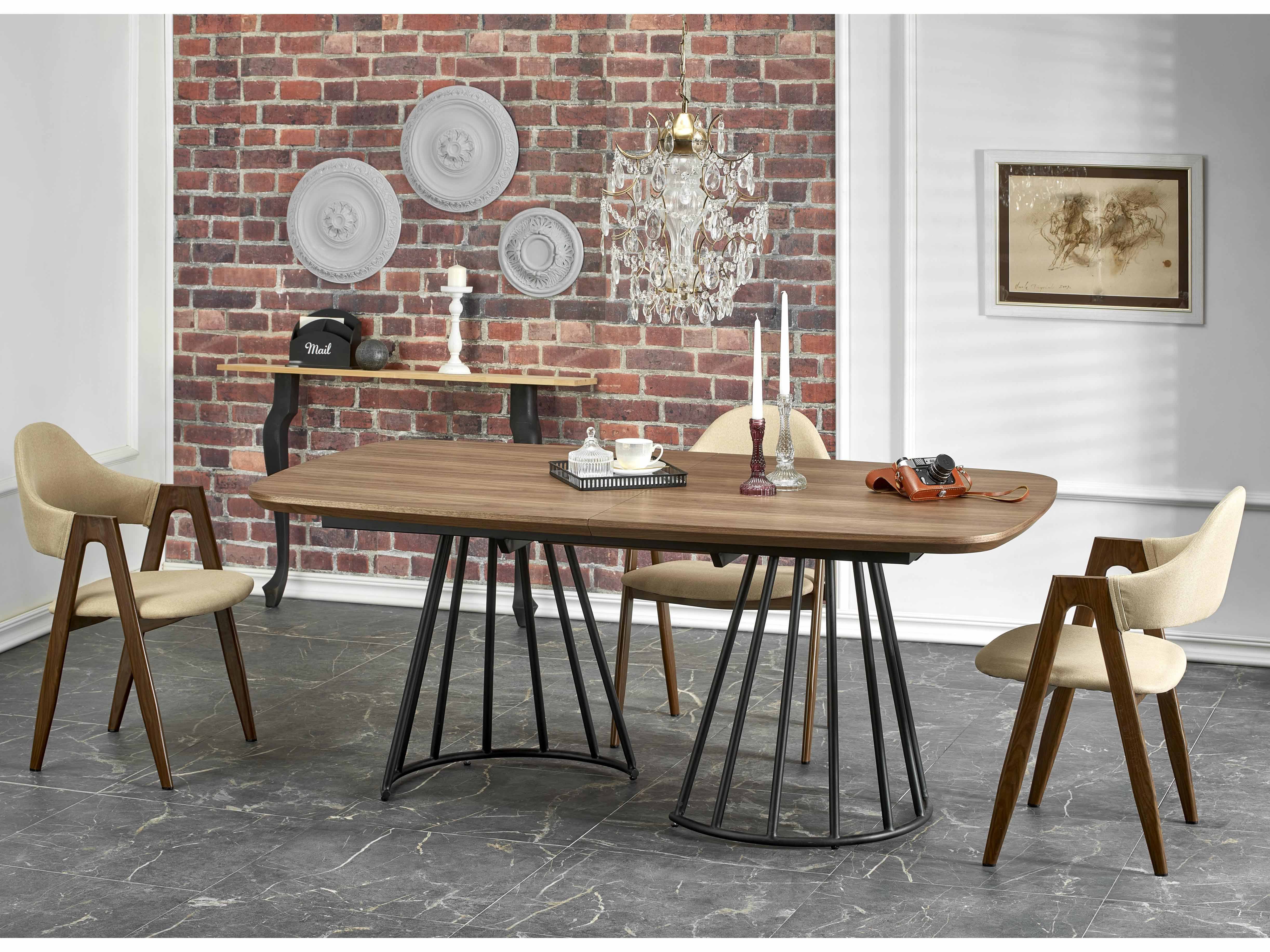 Rozkládací jídelní stůl 180-200 cm Evira (ořech + černá) (pro 6 8 osob)