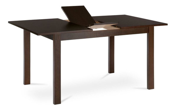 Rozkládací jídelní stůl o délce 120 - 150 a šířce 80 cm v klasickém umírněném designu. Stolová deska i vnitřní rozklad je z MDF desky oboustranně potaženo pravovou bukovou dýhou. Nohy a luby jsou z masivního buku. Nohy jsou ve spodní části opatřeny plastovými kluzáky, zabraňující poškození podlahové krytiny. Moření je v odstínu klasický ořech, výška stolu je 74 cm. Mechanismus rozkladu je z kovových komponentů. U stolu se roztahuje pouze deska, nohy jsou pevné a zůstávají ve své původní poloze. Vklad rozkladu je dělen při umístění uprostřed stolu. Při složení je uložen pod deskou. Zajištění složené nebo rozložené desky je kovovými západkami. Ke stolu lze umístit 4-6 židlí. Stůl se výborně hodí do moderních, ale také klasicky laděných jídelen, kuchyní i obývacích prostor. U židlí se už nemusím držet stereotypního názoru, že jsou vhodné jen ve stejném designu i barvě. Trendy uspěšně umožňují i použití židlí s kombinací plastu, kovu, látky či ekokůže. Vytvoření základní sestavy stolu a židlí tedy záleží jen na Vašem vkusu a náladě. Šířka vložené desky je 30 cm.