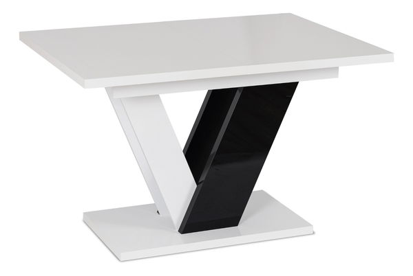 Rozkládací jídelní stůl Comentado (lesk bílý + lesk černý) (pro 4-6 osob)