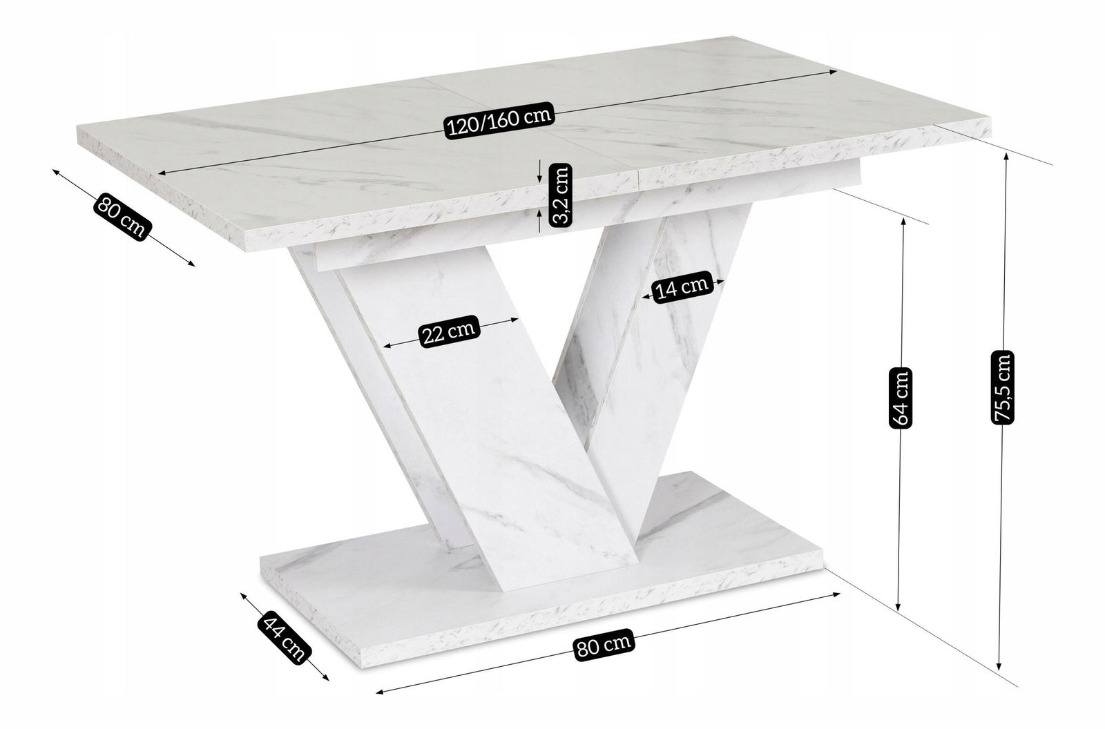 Rozkládací jídelní stůl Comentado (mramor bílý) (pro 4-6 osob) *bazar