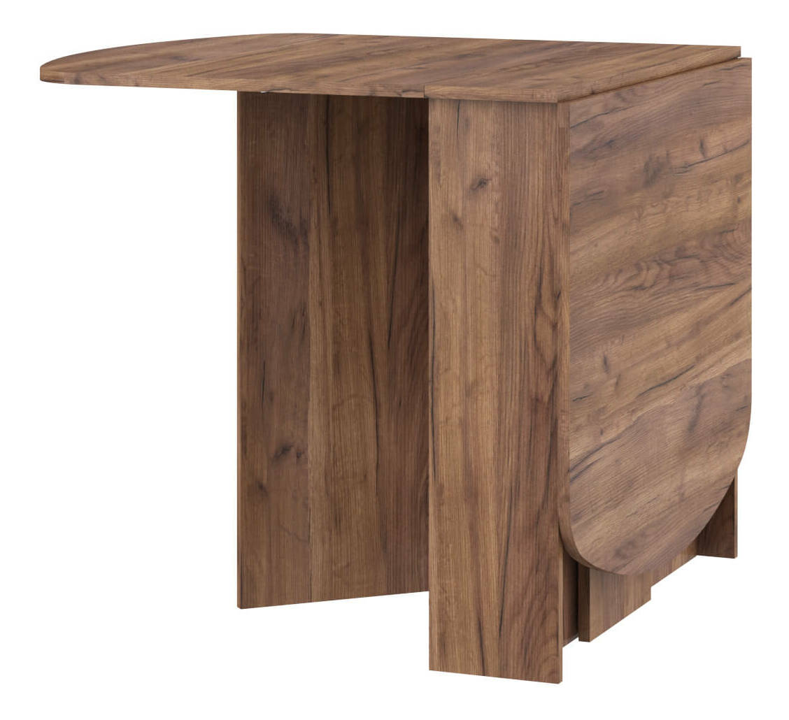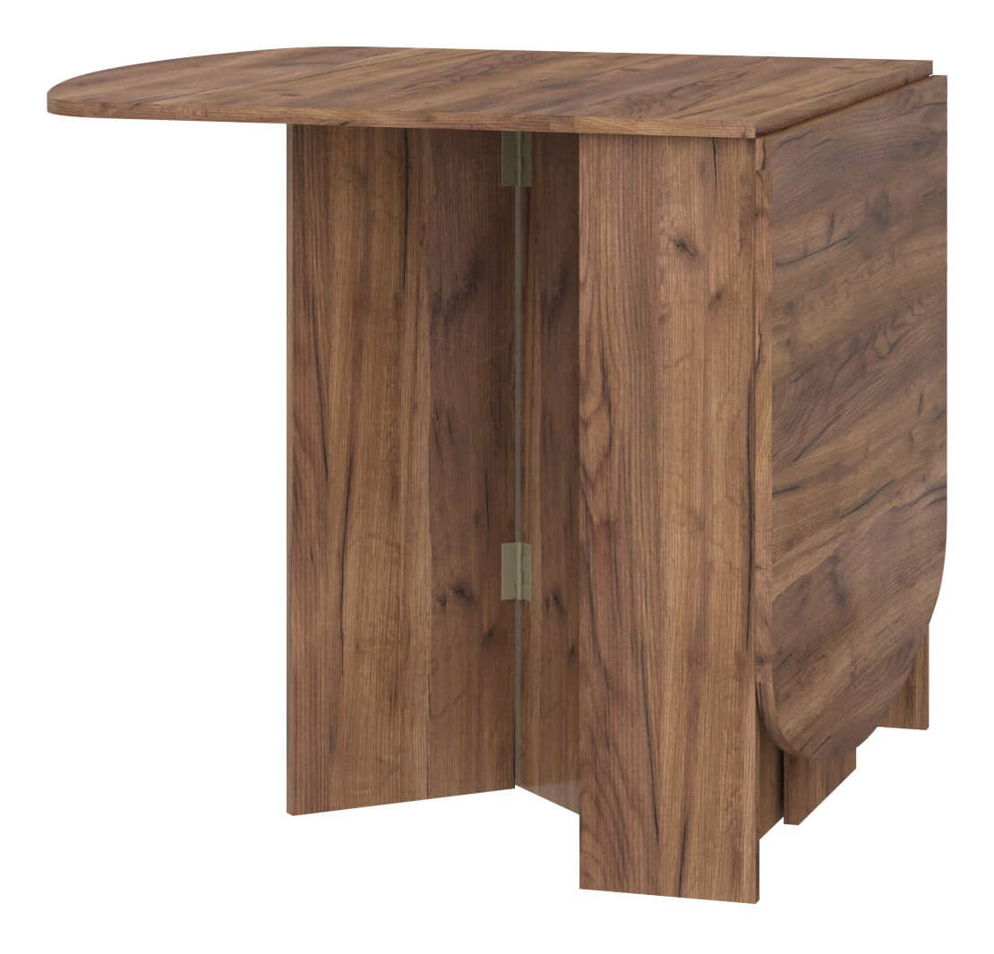 Pokud máte malou kuchyň, či jídelnu, určitě bojujete o každý kousek prostoru a přemýšlíte nad vhodným zařízením, které by Vás neomezovalo a neochudobňovalo o volný prostor. Pomoci Vám může rozkládací jídelní stůl Elston 2 B, který je se svým skládacím řešením horní desky vhodný spíše do menších kuchyňských prostor. Po rozložení je vhodný pro 4 až 6 osob (maximální šířka 150 cm, poloviční šířka 86 cm), ve složeném stavu je široký pouze 22 cm a dlouhý 80 cm. Sklopné díly horní desky jsou upevněny na pevných pantech na základnu stolu, nebo její střední nohu. Sklopné díly jsou po rozložení postaveny na rozkládacích nohách dodávají stolu stabilitu. Stůl je vybaven jednou mělčí horní a jednou hlubší dolní zásuvkou, které jsou vnitřní součástí střední nohy nebo základny. Zásuvky mají masivní šedé vodorovné úchyty. Jídelní stůl Elston 2 B Vám zaručí, že se během obědů a posezení s rodinou a přáteli budete cítit dobře.