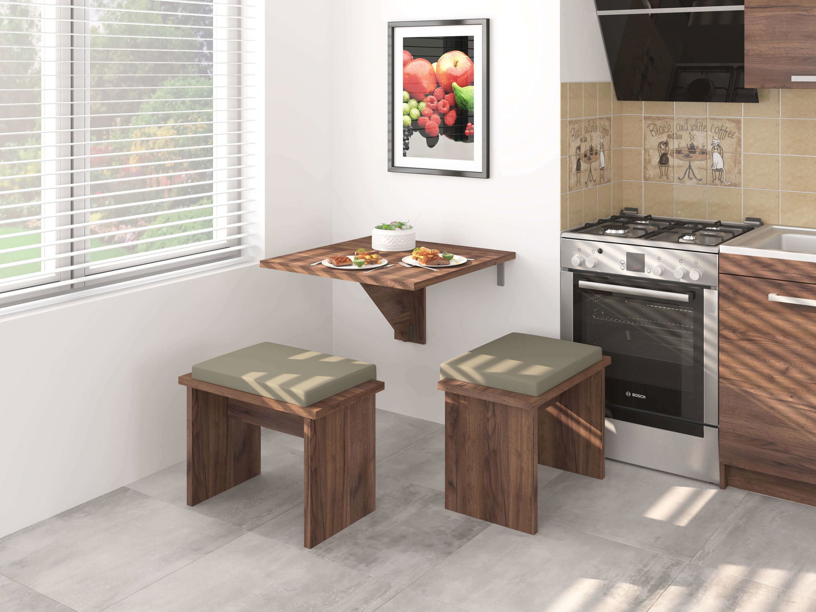 Máte malou kuchyň a velký jídelní stůl se Vám do ní nevejde? S tímto šikovným rozkládacím jídelním stolem vytvoříte místo, kde si v klidu vychutnáte oběd nebo ranní kávu. Rozkládací jídelní stůl Expert 7 B se upevňuje delší hranou na stěnu a po rozložení má šířku 70 cm a ví tedy pohodlně obsloužit 2 osoby. Po složení umí výrazně ušetřit místo, protože ze stěny vyčnívá jen 18 cm.
