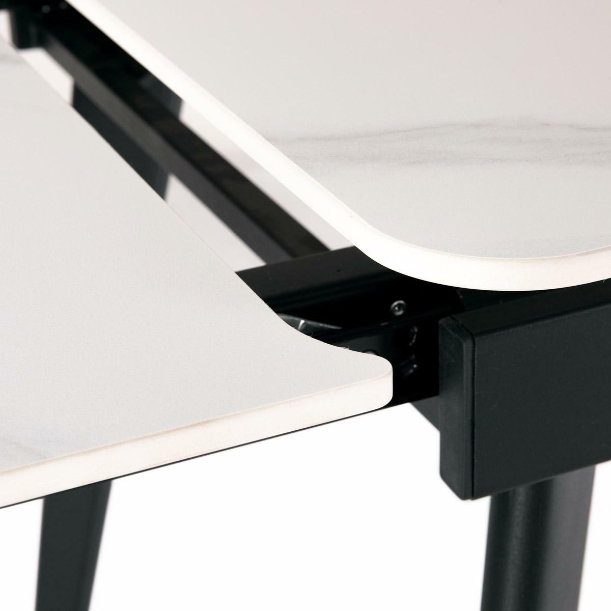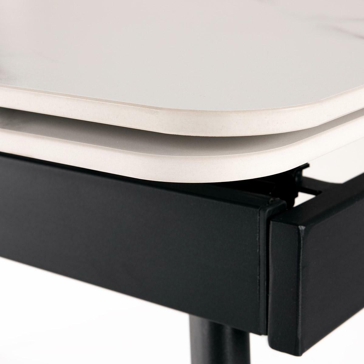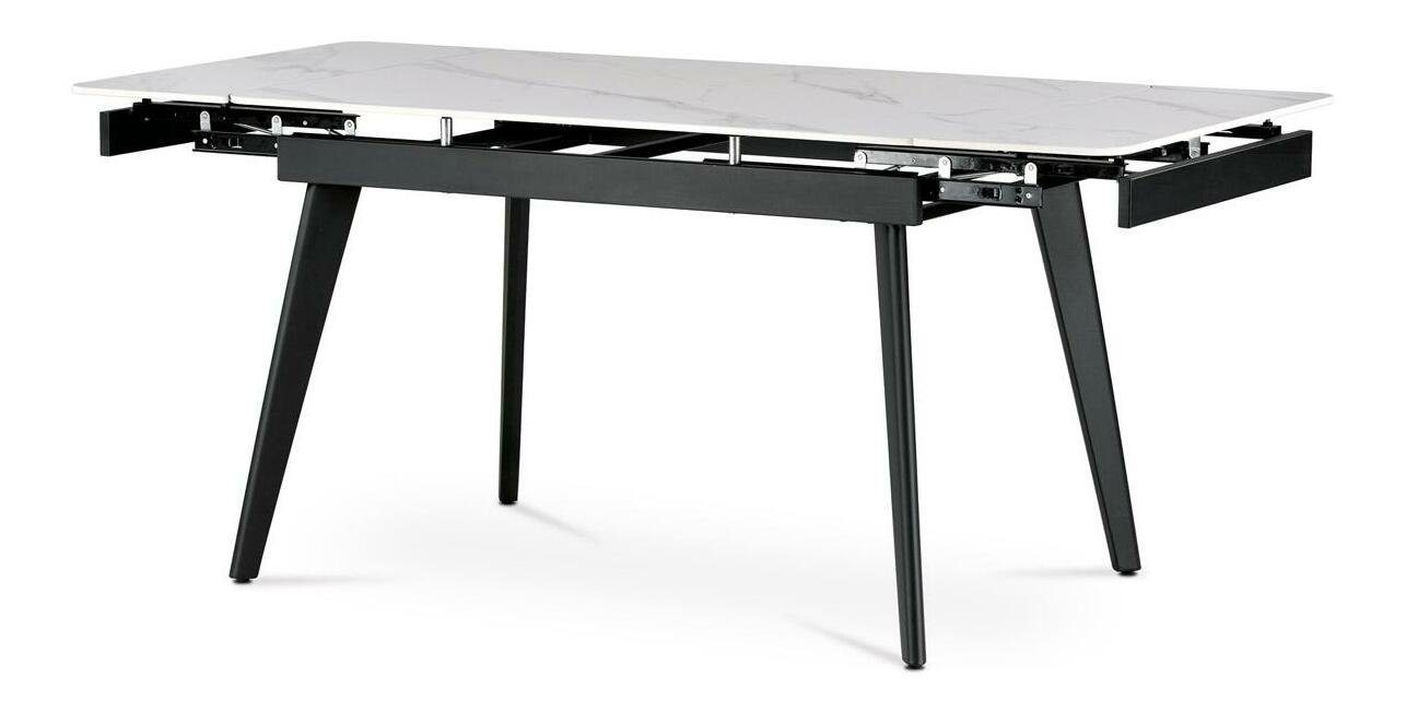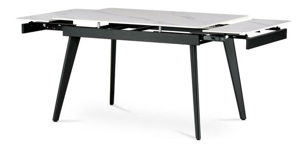 Designový jídelní rozkládací stůl o rozměru 120+30+30 x 80 x 76 cm v industriálním minimalistickém stylu. Vrchní stolová deska je tvrzené keramiky tl. vypalovacího laku v matném černém odstínu. Plastové kluzáky na nohou eliminují možnost poškození povrchů tvrdých podlah. minimalistickým designem i skvělým zpracováním detailu, ale i provedením desky se zakulacenými rohy a v neposlední řadě i dekorem vrchní desky, imitující jeden z nejkvalitnějších a nejžádanějších mramorů na světě. prostorách. Výška stolu je 76 cm. Ke stolu je možné umístit až 8 židlí. Použití je velmi široké, od sochařství (Michelangelo, Bernini, Donatello) až po stavebnictví současné i historické.