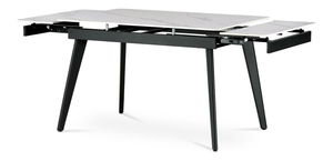 ZobrazitDesignový jídelní rozkládací stůl o rozměru 120 + 30 + 30 x 80 cm v industriálním minimalistickém stylu. Vrchní stolová deska je tvrzené keramiky tl. 12 mm v matném dekoru "Bulharský šedý mramor". Konstrukce stolu i nohy jsou celokovové s nástřikem práškového vypalovacího laku v matném černém odstínu. Plastové kluzáky na nohou eliminují možnost počkození povrchů tvrdých podlah. Rozkládání je výsuvné, díly o šířce 30 cm se vysouvají z obou kratších stran, mechanika je celokovová a pro usnadnění jak výsuvu, tak zajištění, je opatřena pružinami a plynovými písty. Stůl zaujme jak svým minimalistickým designem i skvělým zpracováním detailu, ale také provedením desky se zakulacenými rohy a v neposlední řadě i dekorem vrchní desky, imitující jeden z nejkvalitnějších a nejžádanějších mramorů na světě. Jistě se stane se velmi elegantním a nepřehlédnutelným prvkem v moderních – industriálních, ale také klasicky laděných jídelnách, kuchyních a obývacích prostorách. Výška stolu je 76 cm. Ke stolu lze umístit až 8 židlí. Bulharský šedý mramor je jedním z nejoblíbenějších mramorů z Íránu. Jedná se o vysoce kvalitní a luxusní šedý mramor široce používaný ve stavebnictví. Má velmi unikátní a kontrastní kresbu složenou z černých a bílých vláken na šedém základě.