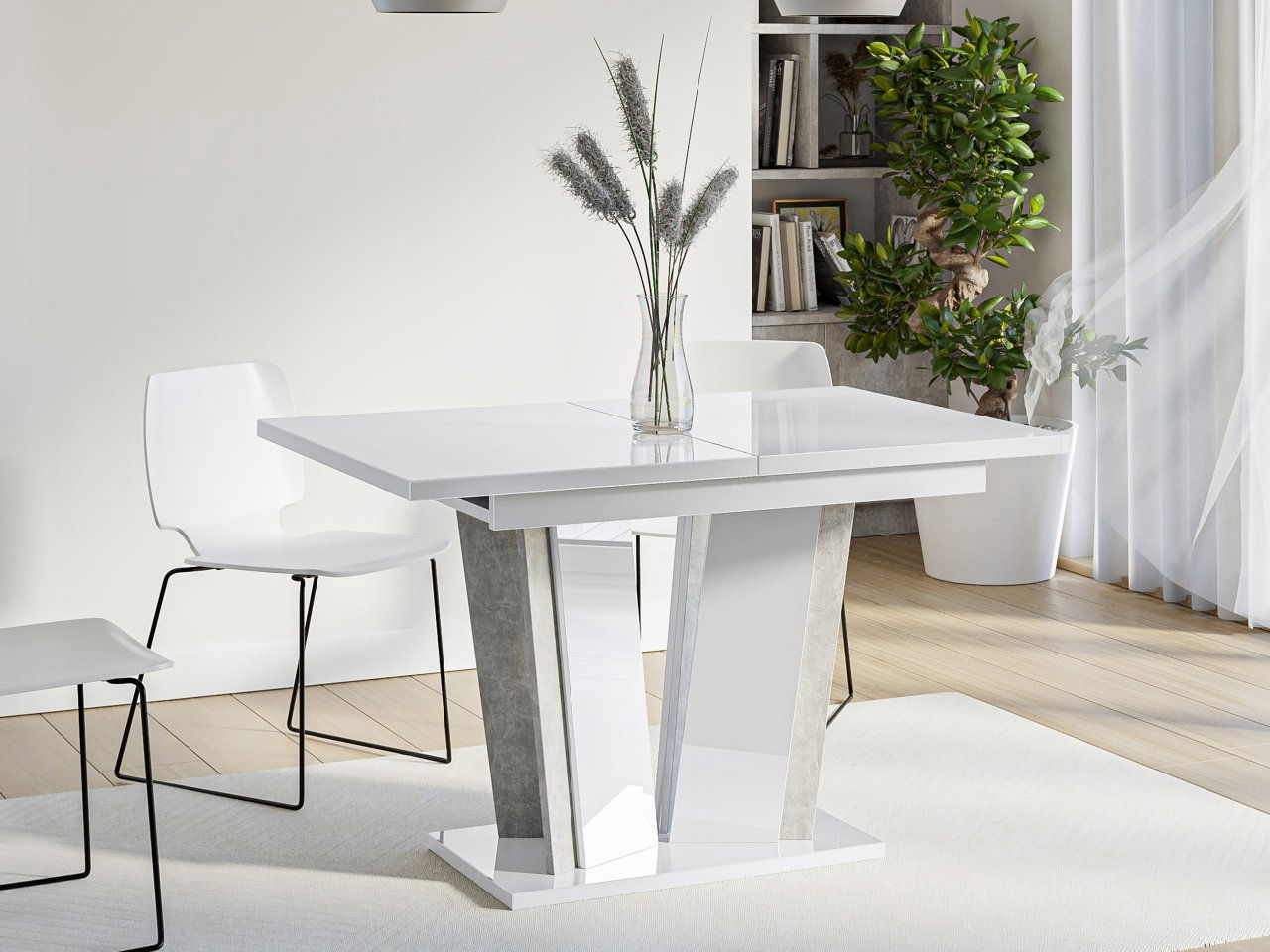 Rozkládací jídelní stůl Ledysa II (lesk bílý + beton) (pro 2-6 osob)