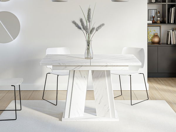 Rozkládací jídelní stůl Ledysa (mramor bílý + lesk bílý) (pro 2-6 osob)