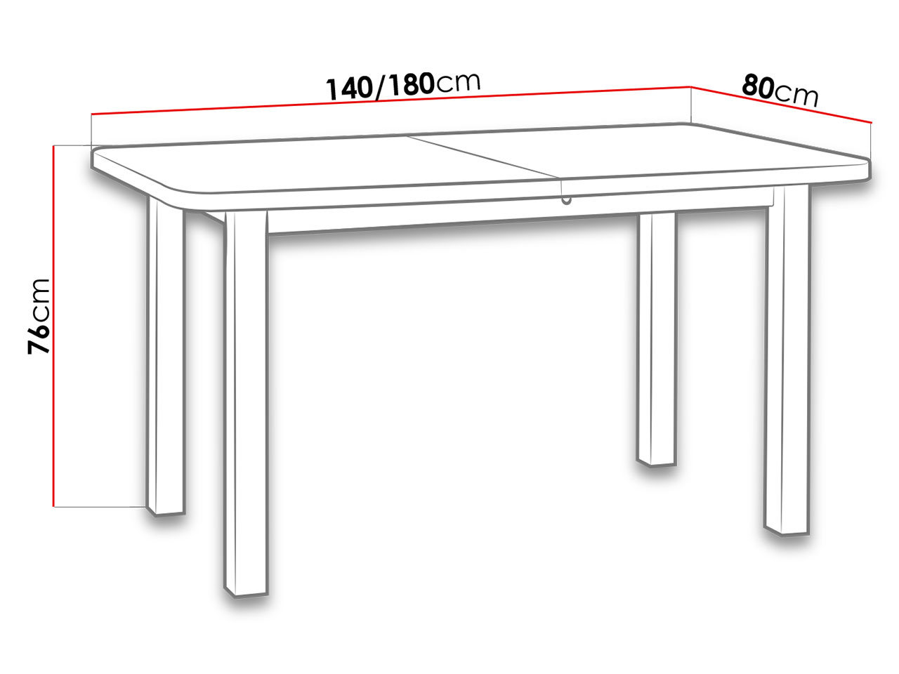 ZobrazitRozkládací jídelní stůl Legano II je dřevěný stůl do jídelny a kuchyně o rozměrech 140 cm x 80 cm. Díky vložce 40 cm jej prodloužíte na 180 cm. Tak dostaneme více místa na talíře a ke stolu se posadí až 8 osob. Stůl má desku se zaoblenými rohy a hrany jsou chráněny ABS hranami.