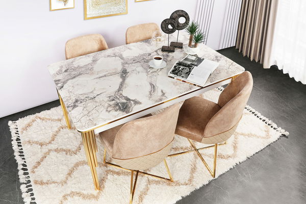 Rozkládací jídelní stůl (pro 6 osob) Diana (Zlatá + Bílá) *bazár *bazar