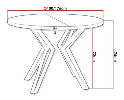 Rozkládací jídelní stůl Relkona je dokonalým společníkem na setkání s blízkými. Nabízí prostor pro společné stolování s rodinou či odpolední kávu s přáteli. Skládací konstrukce se dokonale přizpůsobí vašim potřebám. Z jeho výhod budou denně těžit dva lidé. Malá 100 cm dlouhá deska se vejde i do malé jídelny spojené s obývákem. V případě potřeby lze povrch pracovní desky prodloužit na 176 cm. Tento prostor vám úspěšně umožní uspořádat párty až pro 6 osob. Moderní kulatý jídelní stůl má módní kovové nohy, které dodají interiéru jedinečný akcent. Ložisková vodítka umožňují rychlé a snadné rozložení desky stolu.