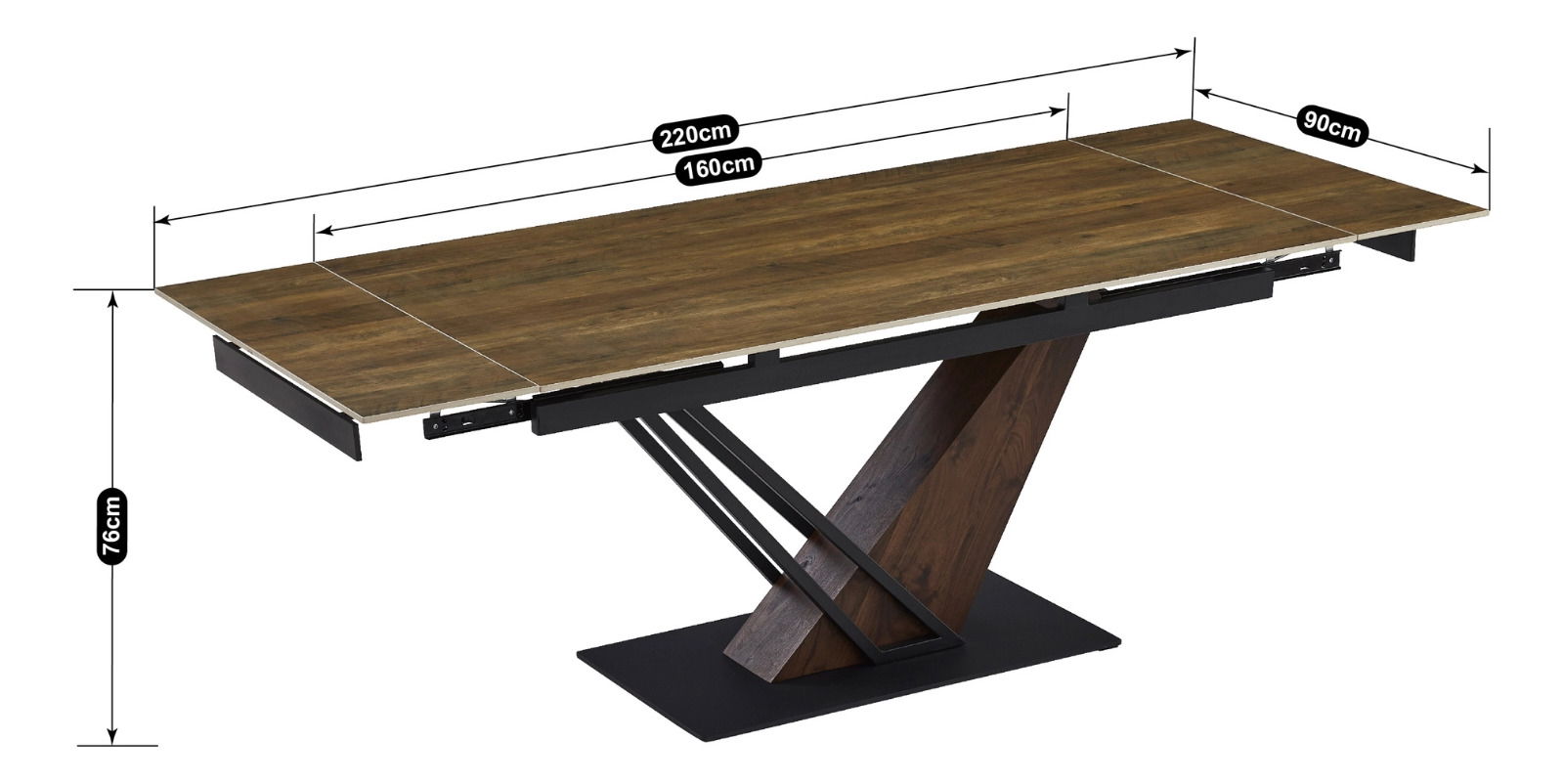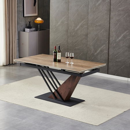Rozkládací jídelní stůl Rixy (dub tmavý + černá) (pro 6-8 osob)