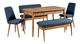 Rozkládací jídelní stůl se 2 židlemi a 2 lavicemi Vlasta (ořech + tmavě modrá)