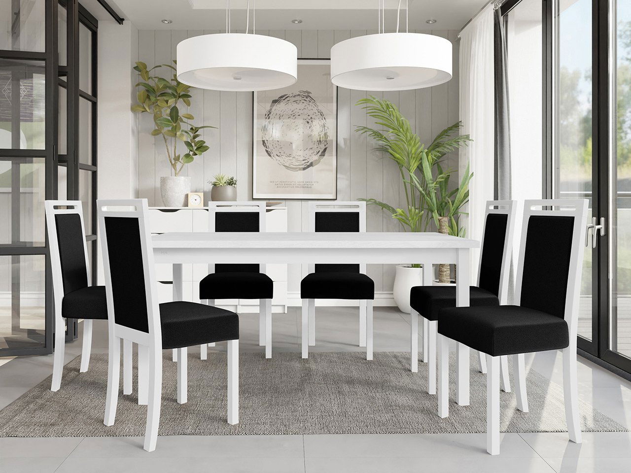 Rozkládací jídelní stůl se 6 židlemi Asiduo AL3 (bílá + černá)