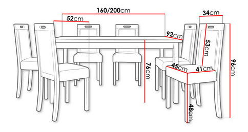 ZobrazitRozkládací jídelní stůl se 6 židlemi je ideální volbou pro ty, kteří hledají pohodlí a styl. Dodejte svému prostoru funkčnost a jedinečnou krásu. Elegantní stůl se 6 židlemi je ideální do kuchyně, jídelny a obývacího pokoje. Něco, co odlišuje soupravu, jsou pohodlné židle. Čalouněné sedáky a opěradla zajistí vysoký komfort při každodenním stolování či dlouhých společenských setkáních. Skvělé barvy a jemnost potahových materiálů jsou skvělým stylovým odpočinkem! Stůl s židlemi je ideální prostor pro vytvoření společně strávených chvil s vašimi nejbližšími. Varianta AL03 je kombinací pohodlí a designu, který vytváří skvělou atmosféru. Sada se skládá z: 1x Dřevěný roztahovací stůl 90 x 160/200 II 6x židle Heven V Rozměry stolu: délka: 160cm, délka v rozloženém stavu: 200 cm, šířka: 92 cm, výška: 76 cm Rozměry židle: šířka: 45cm sedátka: 47 cm Provedení stolu: bukové dřevo, vrchní část: laminát, hrany zakončené ABS dýhou, tloušťka desky stolu: 32 mm, rovné nohy 6,5 x 6,5, rozestup nohou: dlouhá lamela: 125 cm, krátký pásek deskou) Provedení židle: bukové dřevo, povrchově upravené mořidly a vodovými laky, maximální zatížení: do 120 kg Záruka: 24 měsíců