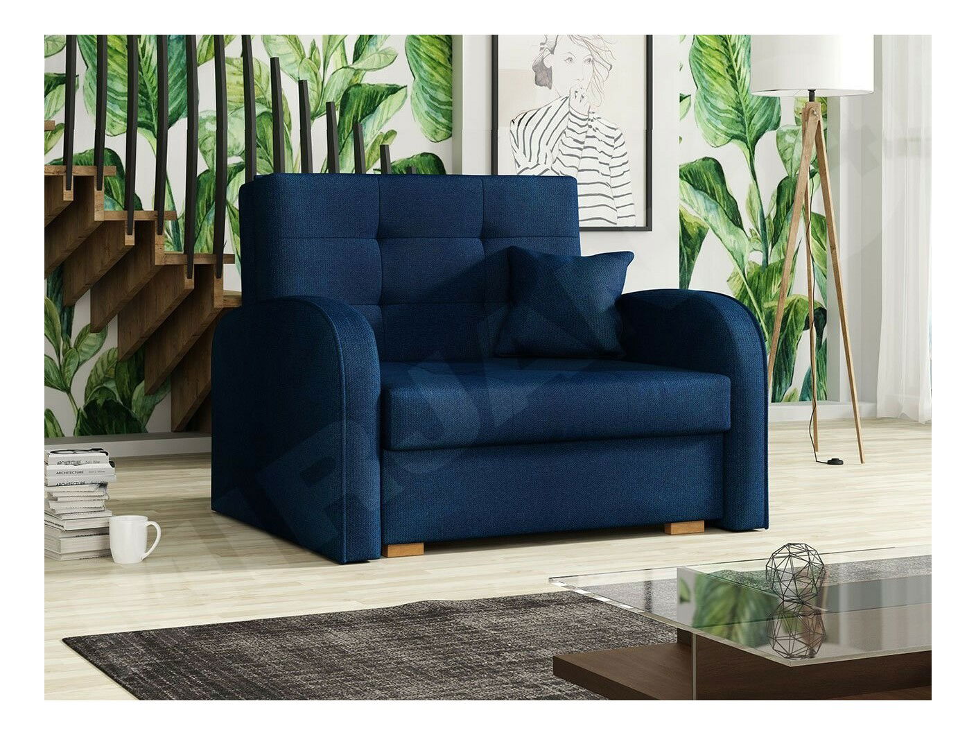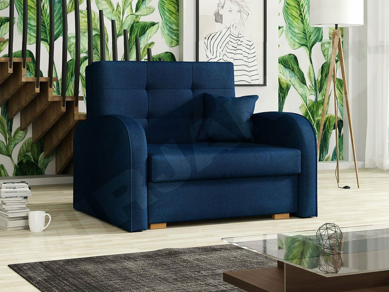 ZobrazitToto sklápěcí křeslo je pohodlný kus nábytku určený ke spaní na každý den. Výhodou křesla je, že je volně stojící, což funguje skvěle při oddělování televizní zóny od jídelny – můžete jej umístit i uprostřed místnosti. Takto dokonale funguje jako kus nábytku, který vytváří pohodlný koutek pro čtení nebo místo pro styk s kávou.