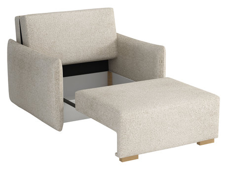 ZobrazitRozkládací křeslo Clovea Glov I s funkcí spaní vyhovuje potřebám malých a stísněných místností. Nabízí prostor pro spaní pro 1 osobu a často se vybírá do pokojů pro mladé. Malé křeslo, které se stará o plochu k sezení i spaní, splňuje očekávání teenagerů i jejich rodičů. Praktické křeslo je také skvělým doplňkem relaxačního obývacího pokoje. Umístěno vedle rohové sedačky nebo větší pohovky. Křeslo lze rozložit, což zvyšuje funkčnost obývacího pokoje a je užitečné, pokud hosté potřebují přenocovat. Úzké bočnice jsou vizuálním vrcholem tohoto kusu nábytku. Tento designový detail je závanem modernosti do interiéru každé místnosti.