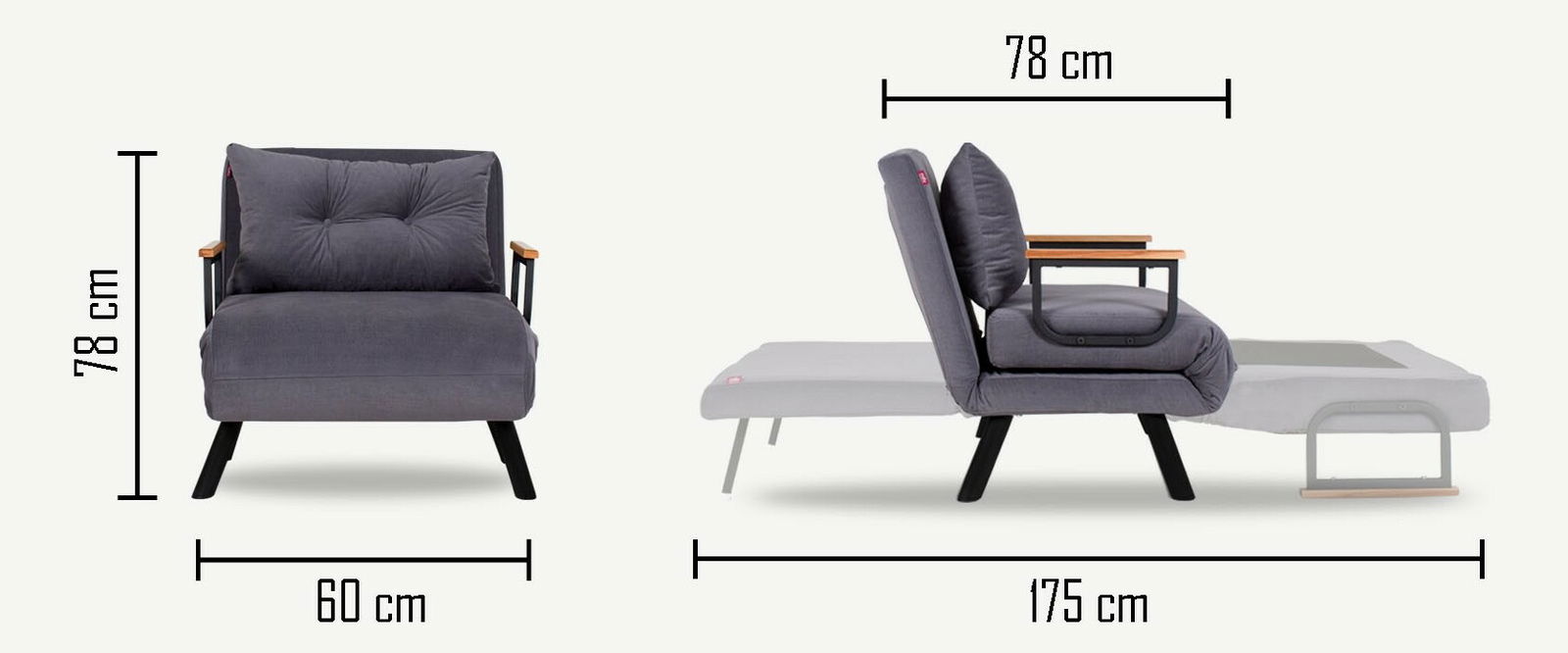 Rozkládací křeslo Sandy (šedá)