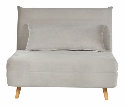 Kompaktní a okouzlující pohovka ve světle šedém barevném provedení je stylovým a zároveň praktickým řešením do jakéhokoli interiéru s omezeným prostorem. Díky rozkládacímu mechanismu a nastavitelnému opěradlu lze snadno změnit na pohodlnou postel. Jednoduchý design, který je doplněn horizontálním prošíváním a dřevěnýma nohama, je vhodnou volbou do interiérů zařízených v moderním a skandinávském stylu. Polštář na opěradle má snímatelný potah, který usnadní čištění případných skvrn.