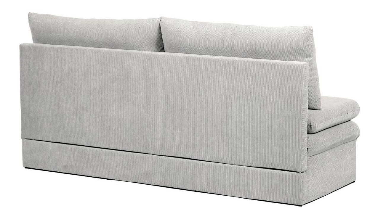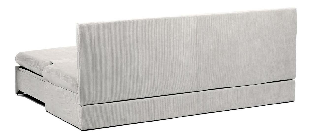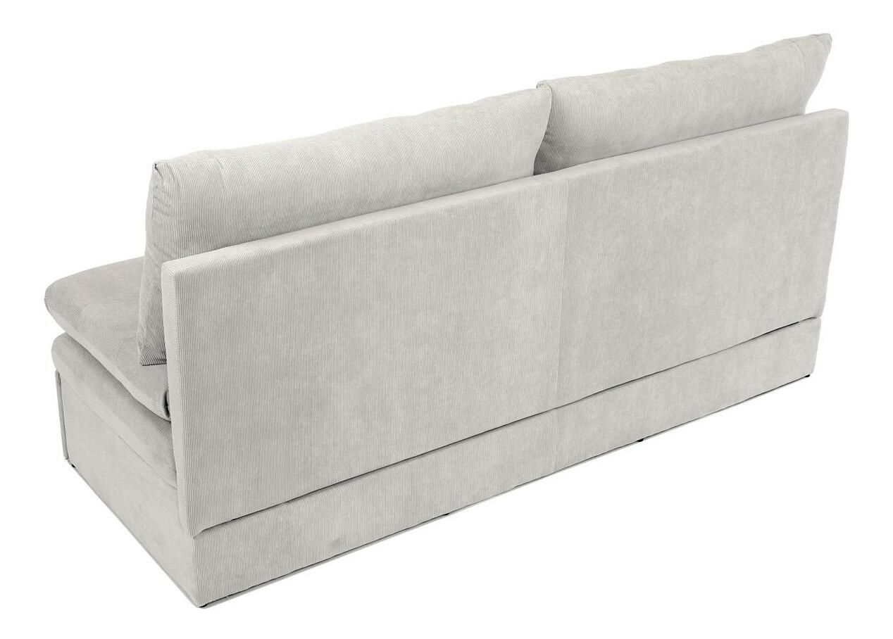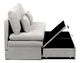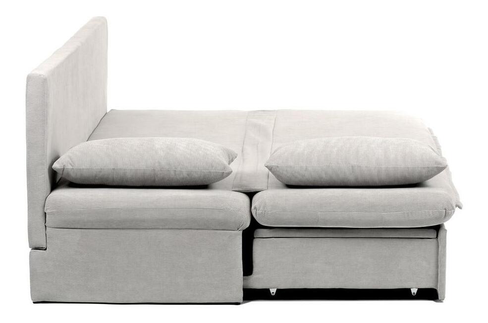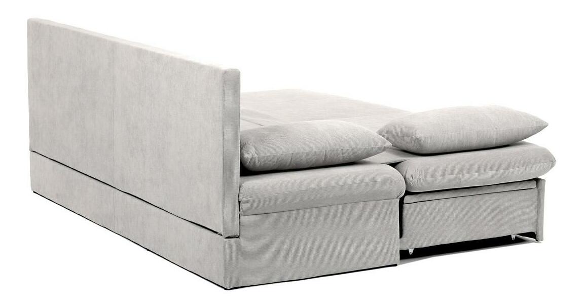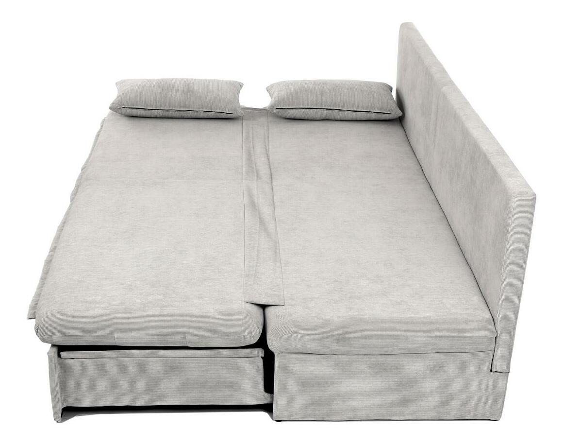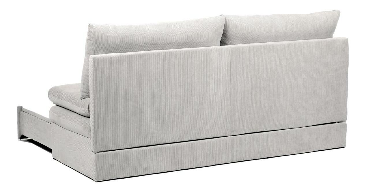 ZobrazitRozkládací pohovka s úložným prostorem, béžové barvy. Pohovka je vybavena třemi velkými opěrnými polštáři a dvěma menšími dekorativními polštáři. hosty. Kombinuje moderní design s funkčností a komfortem.