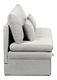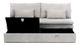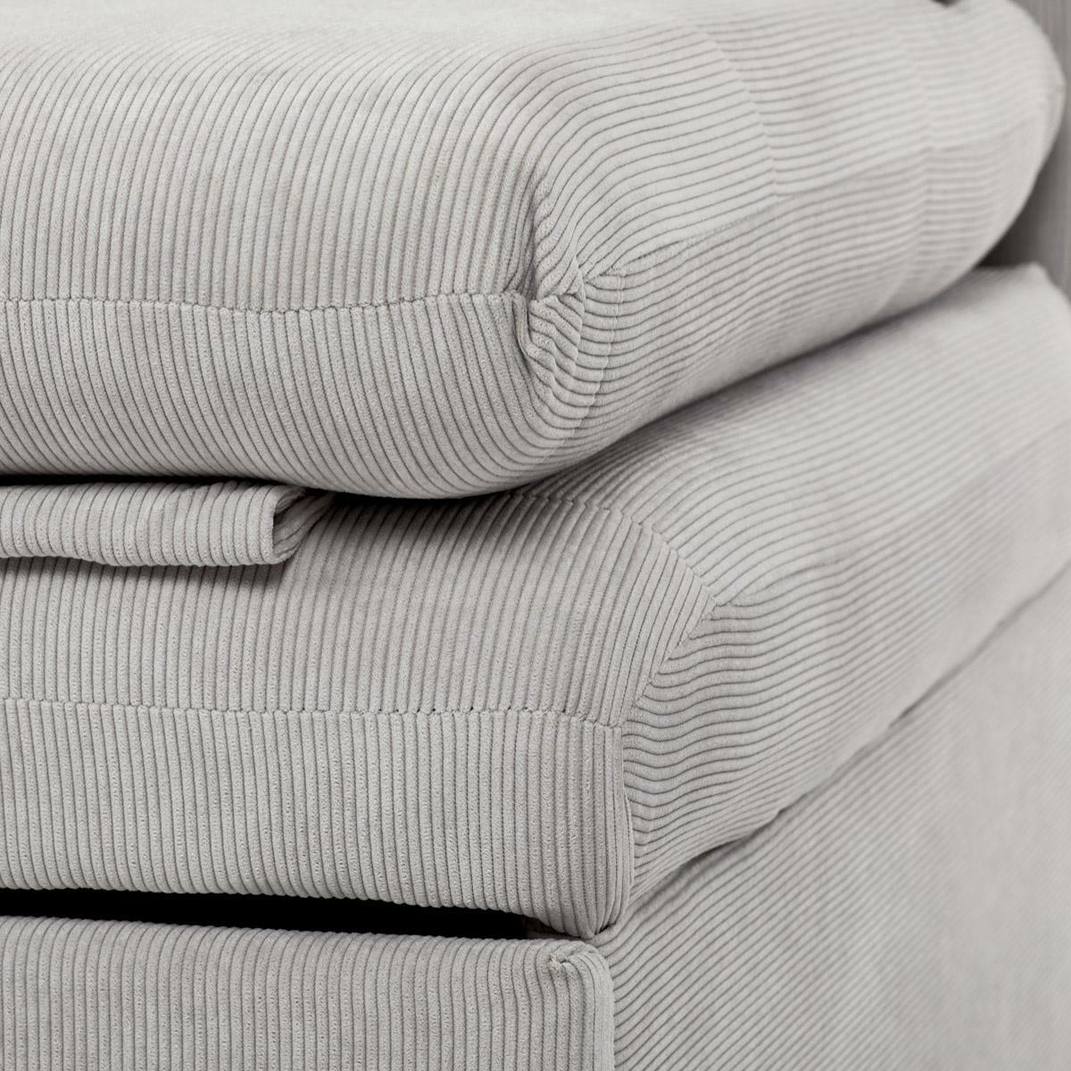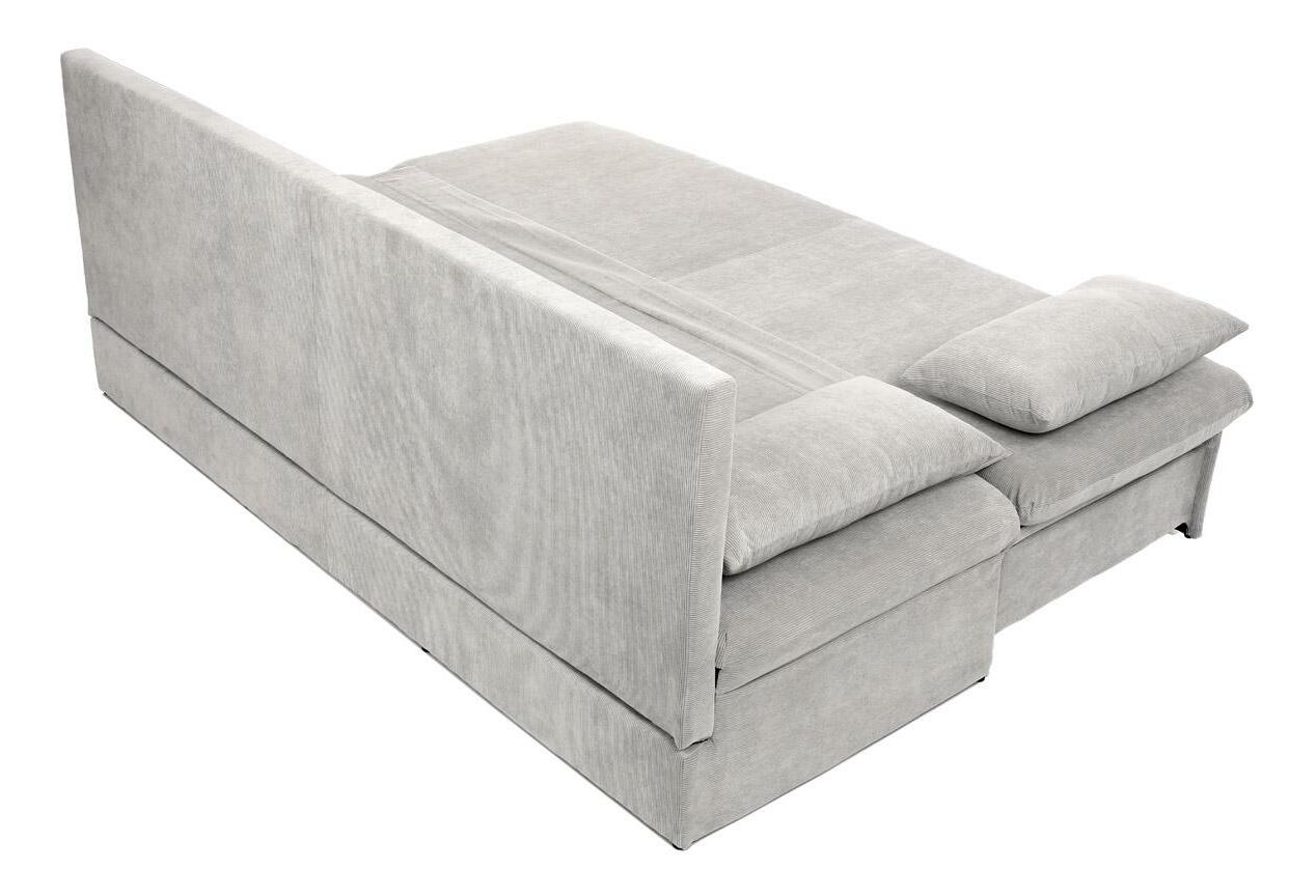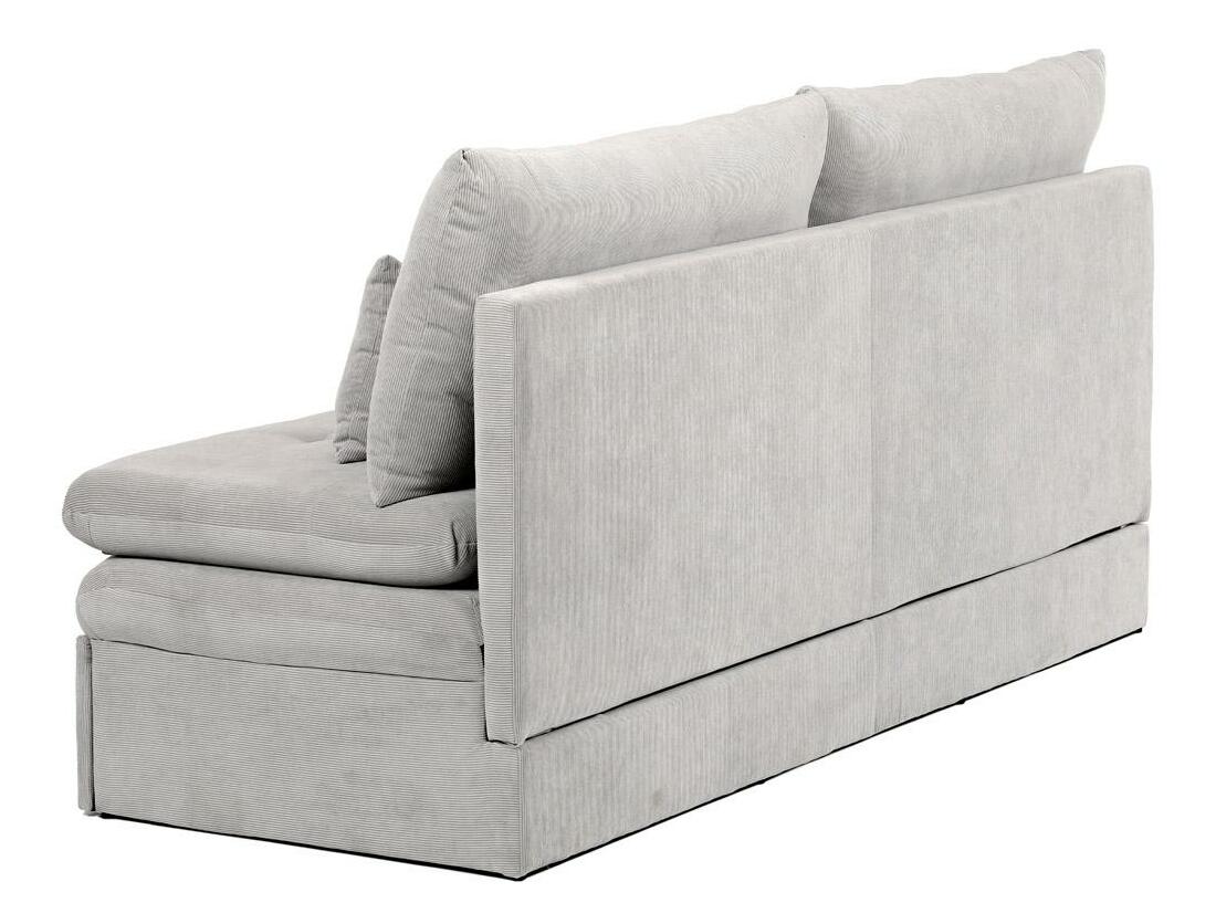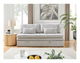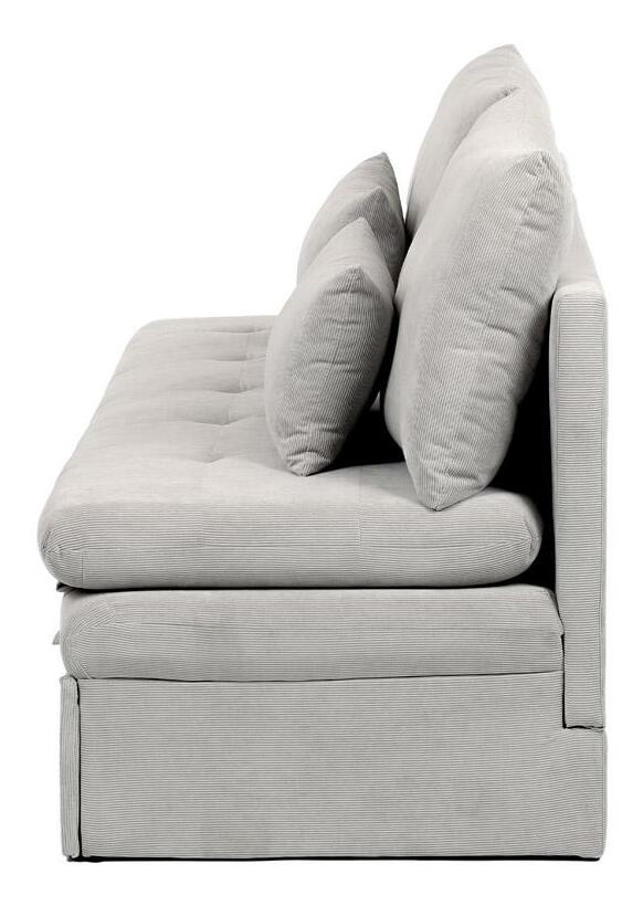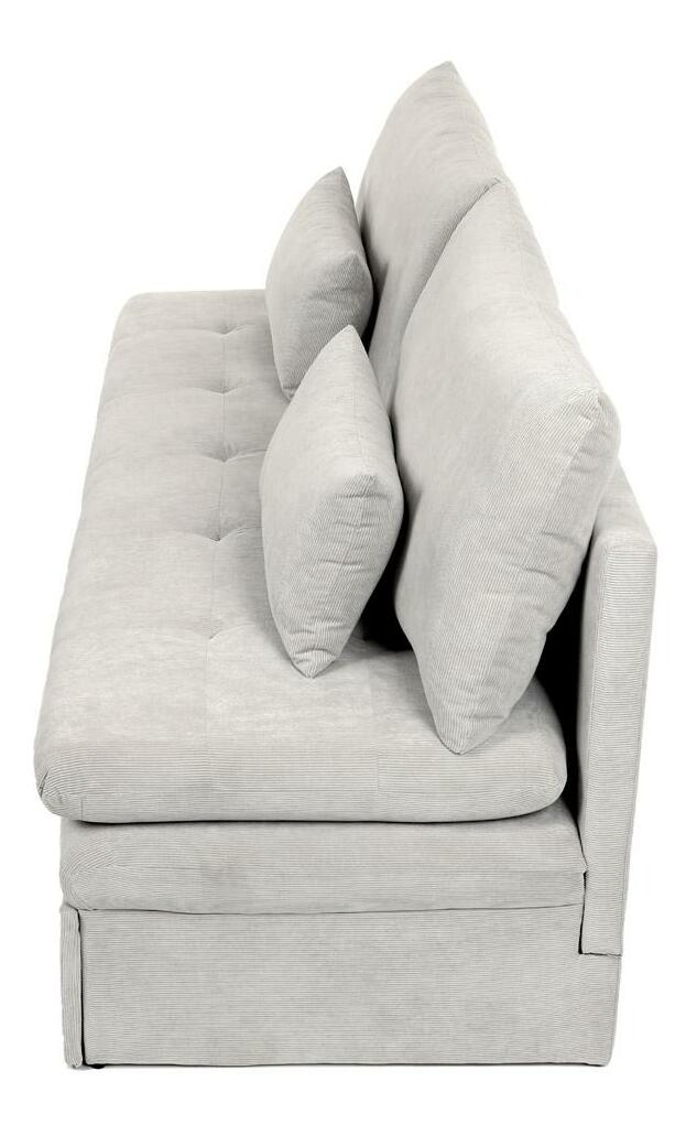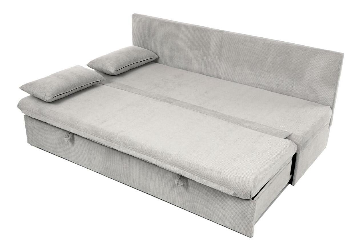 ZobrazitRozkládací pohovka s úložným prostorem, béžové barvy. Pohovka je vybavena třemi velkými opěrnými polštáři a dvěma menšími dekorativními polštáři. hosty. Kombinuje moderní design s funkčností a komfortem.