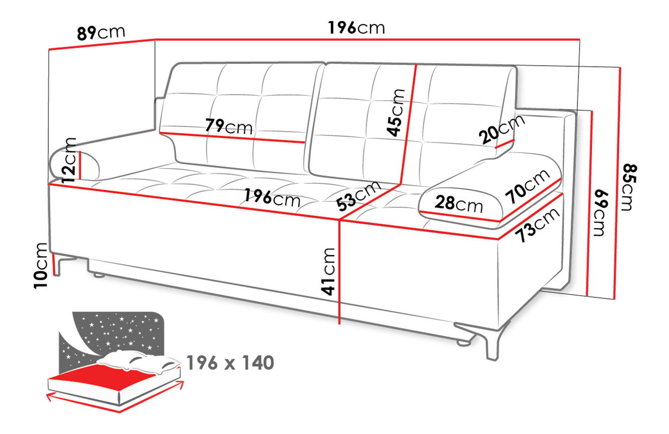 Plocha na spaní: 195 x 140 cm