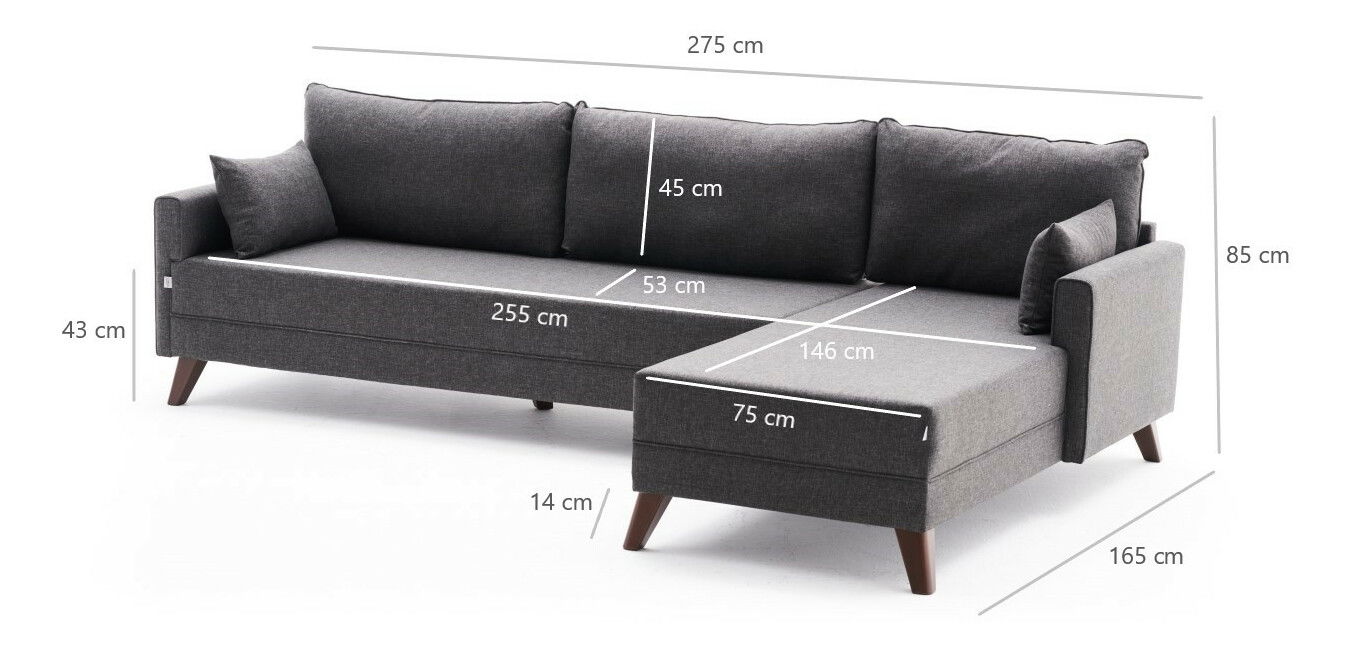 Rozkládací pohovka Bellina 1 (antracit) (P) je praktickým a elegantním doplňkem pro váš obývací prostor. S výškou 85 cm, šířkou 275 cm a hloubkou 165 cm nabízí dostatek místa pro vaše pohodlí. Vyrobená je z kvalitního jedlového dřeva, které zaručuje její trvanlivost a odolnost. Antracitová barva dodává pohovce moderní a stylový vzhled, který okamžitě zaujme. Rozkládací funkce umožňuje snadné přeměnění pohovky na pohodlné lůžko pro hosty. Bellina 1 je ideální volba pro ty, kdo hledají kvalitní nábytek, který zároveň vypadá dobře a poskytuje pohodlné sezení a spánek.