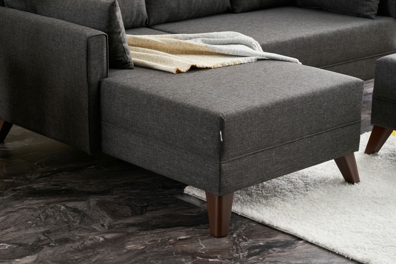 Rozkládací pohovka Bellina (antracit) (L) je ideální volbou pro ty, kteří hledají pohodlný a stylový nábytek pro svůj domov. S výškou 85 cm, šířkou 205 cm a hloubkou 81 cm poskytuje dostatek místa pro sezení i pro spánek. Vyrobeno z kvalitního jedlového dřeva, tato pohovka je robustní a odolná proti opotřebení. Barva antracit odpovídá současným trendům a dodává místnosti moderní a elegantní vzhled. Rozkládací funkce umožňuje rychlé a snadné převedení pohovky na pohodlné lůžko pro návštěvy nebo pro spánek na každodenním základě. Tato pohovka je skvělým doplňkem pro každý domov a poskytuje vynikající hodnotu za její cenu.