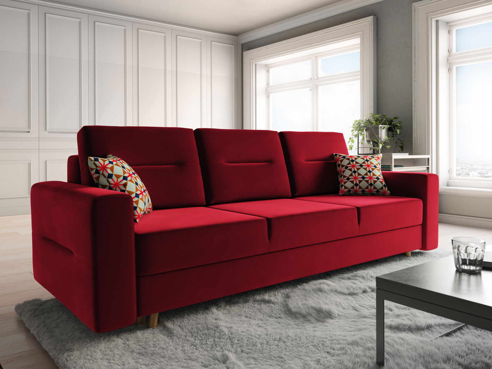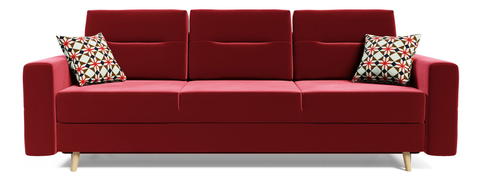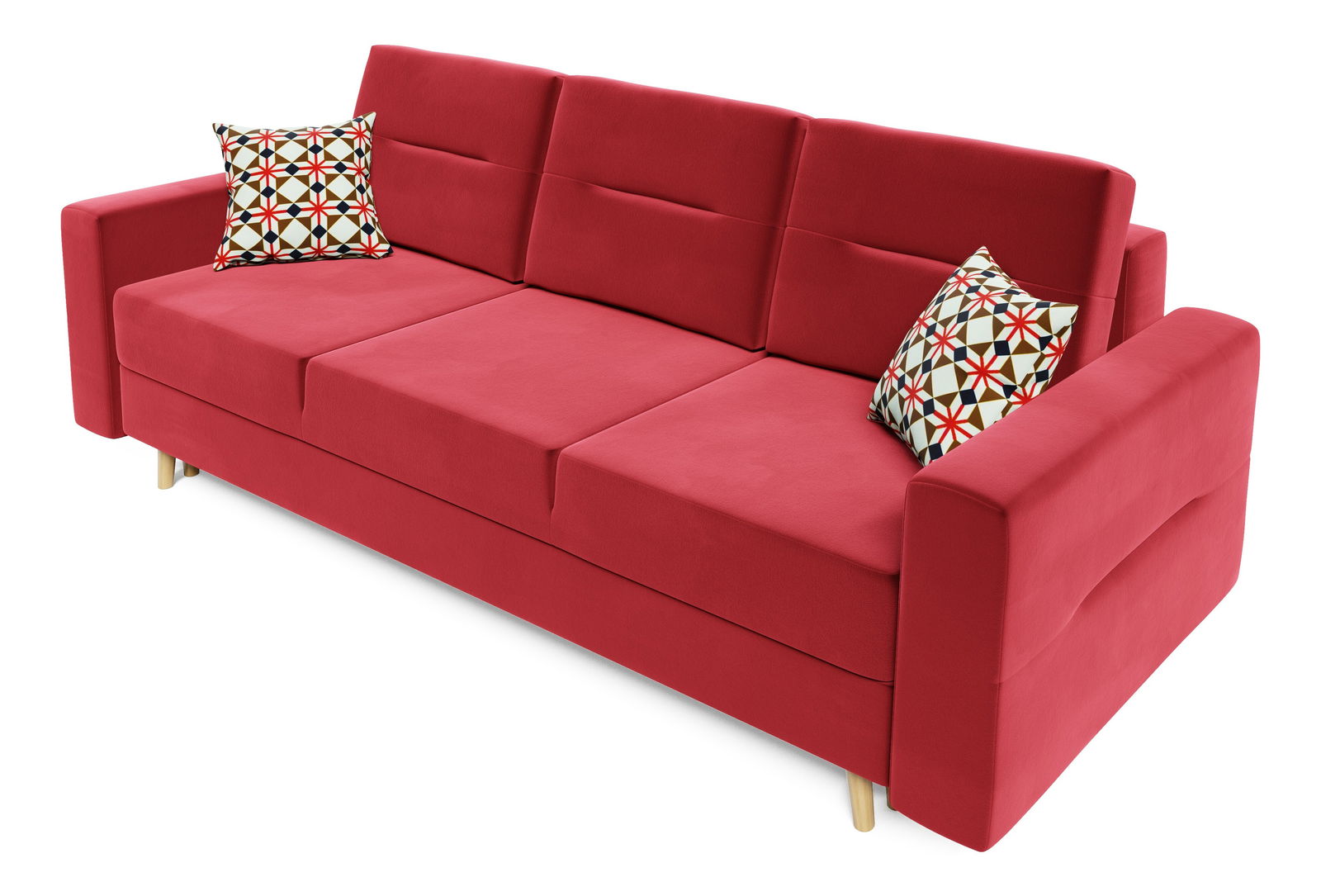 Rozkládací pohovka Bergenia (červená + vzorované polštáře)